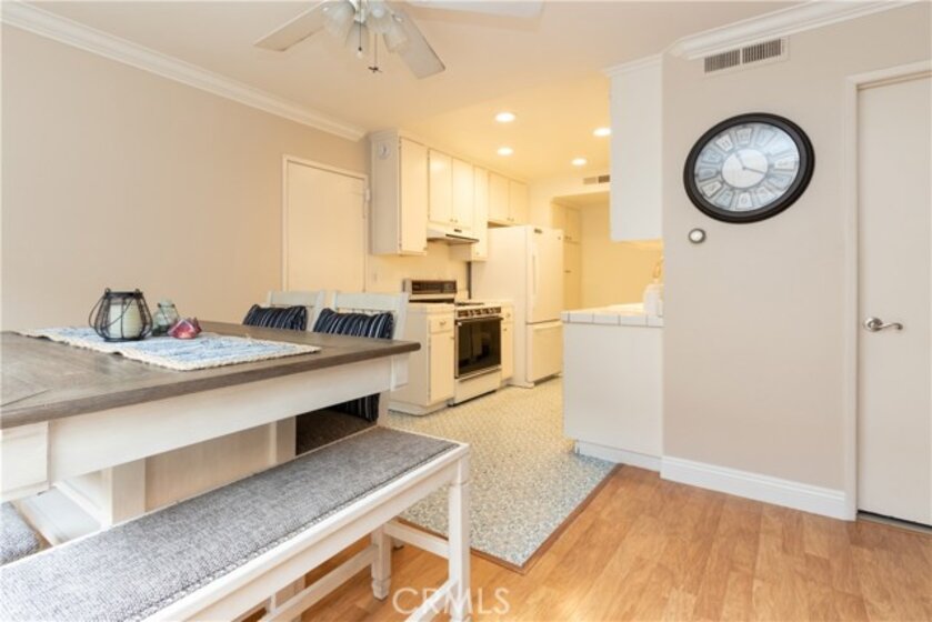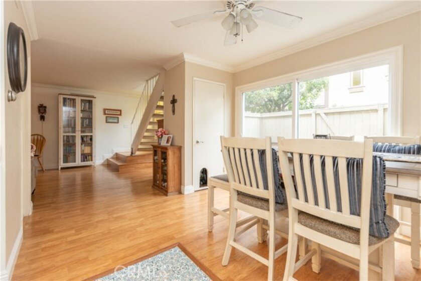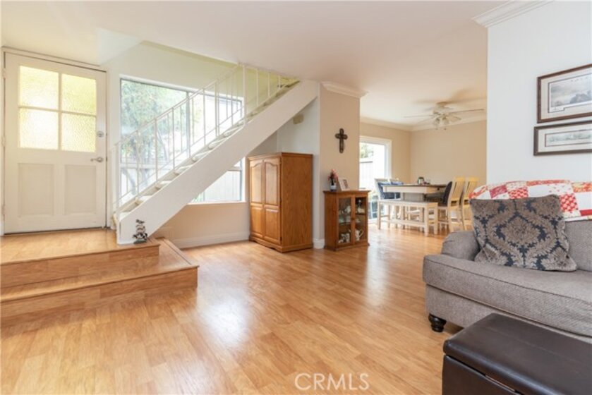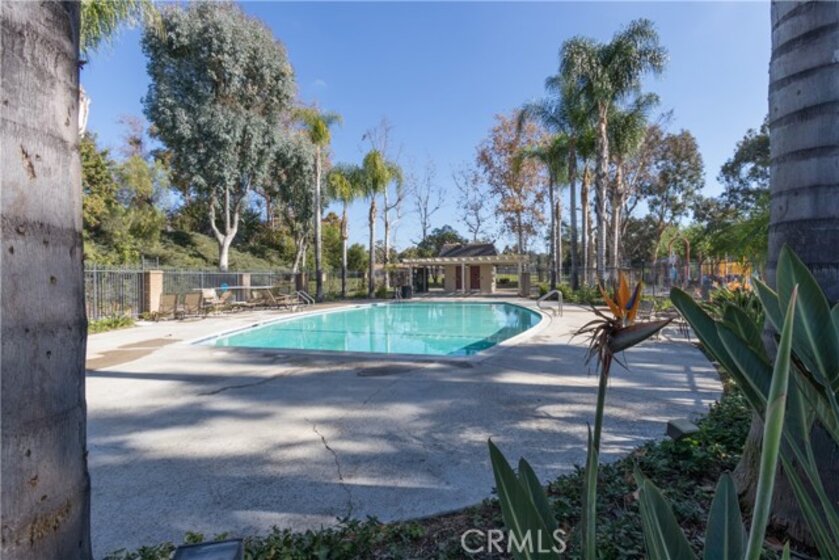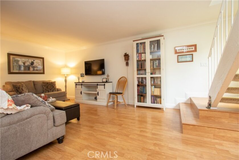 Welcome to 22974 Via Nuez. This 3 bedroom 2 story townhome is spacious with approximately 1150 square feet. Located on a quiet cul de sac, this home offers a peaceful setting. The interior has been upgraded with fresh neutral paint, crown molding and laminate flooring. The living room, dining area and kitchen all blend seamlessly. The downstairs has a half bath, The upstairs features a master bedroom and two secondary bedrooms along with a full bath. The home is well priced to give you room to add a few custom upgrades of your own. Enjoy the benefit and safety of a direct access garage that also offers hook ups for side by side washer and dryer. The enclosed patio off the dining area provides privacy for a BBQ, and al fresco dining. Close to community pool and play area as well as elementary school. Come make this your own.