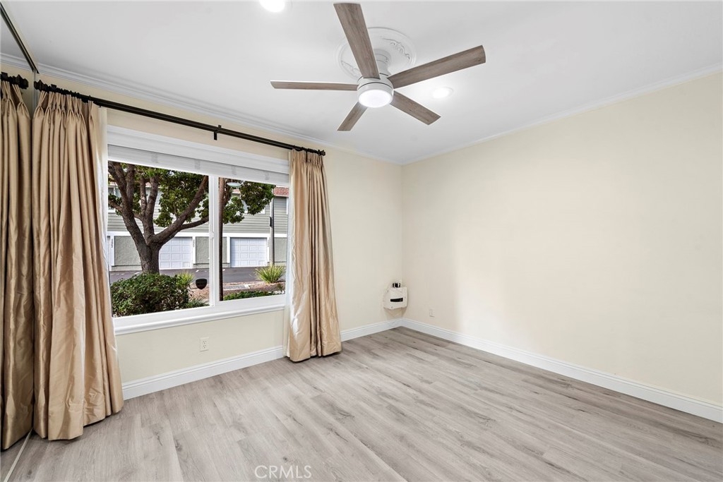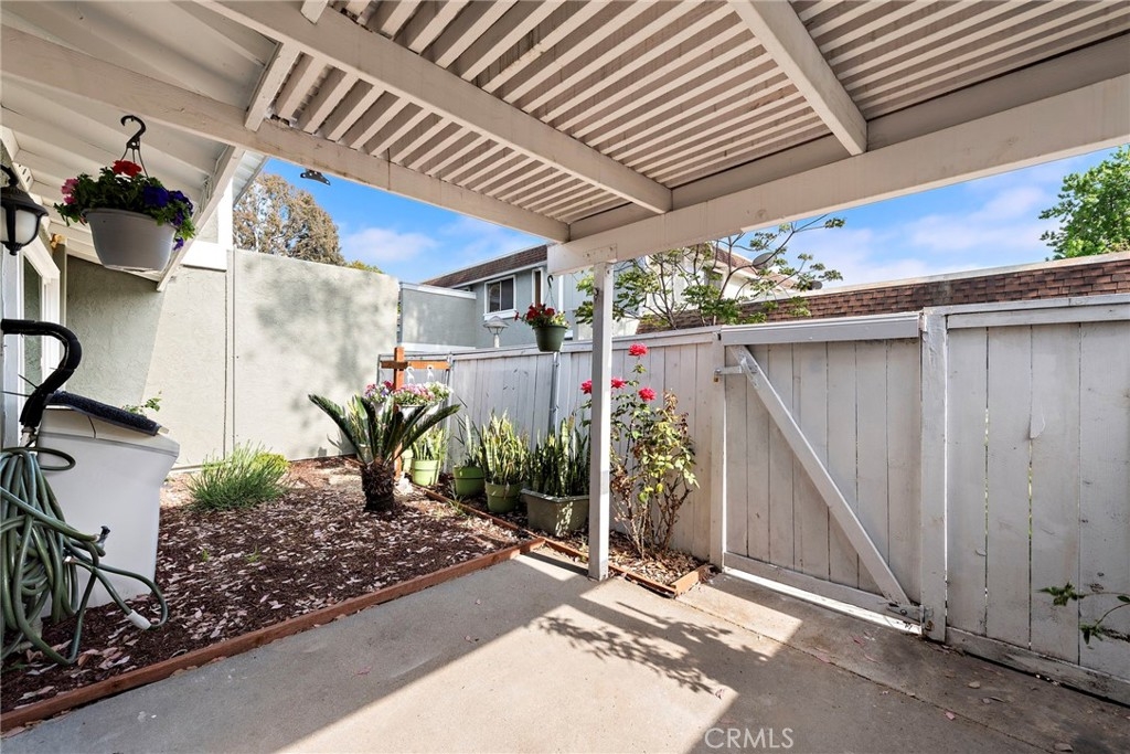 Located in the serene community of Aliso Villas, and in beautiful Mission Viejo, this stunning townhome offers an ideal blend of comfort and modernity. As you step inside, you're greeted by the warm new vinyl plank flooring that flows seamlessly throughout the space, enhancing both aesthetics and functionality. The recently updated bathroom exudes contemporary elegance with a tasteful design. With a newer water heater and pex plumbing installed throughout, you have a peace of mind for many years to come. Enjoy the efficiency with central cooling and heating, as well as quality dual payne windows that invite natural light while maintaining a comfortable indoor environment. These windows also have a dual cover option with elegant drapes and designer faux blinds. The roof, garage door and exterior paint are only a few years old. In the kitchen, granite countertops complement the newly installed backsplash, creating a stylish backdrop for culinary adventures. Equipped with reverse osmosis in the kitchen and a water softener for the entire home, enjoy purified water for cooking, cleaning and drinking. Mirrored closets maximize space and functionality, while new baseboards add a polished finish to the interiors. Home also includes newly installed LED lights, electrical outlets, decorative switches, ceiling fans and a weatherproof pedesteian entry door for the garage. The array of amenities allows you to relax in the pool and spa or let your children explore and have fun at the playground, or socialize with neighbors in the clubhouse. HOA dues also include weekly trash pick up and access to beautiful Lake MV. Enjoy the convenience of ADA compliant ramps at the front and back entrance which ensures easy accessibility for all residents and their guest. Convenience is further enhanced with a washer and dryer conveniently located inside the unit. Did I mention the luck of scoring a corner space? The home has only 1 attached neighbor and conveniently located closer to additional street parking with a larger backyard, you'll be the envy of the neighborhood. With a myriad of upgrades, this classy townhome presents the most unparalleled and affordable opportunity for modern living in the heart of desirable Mission Viejo.