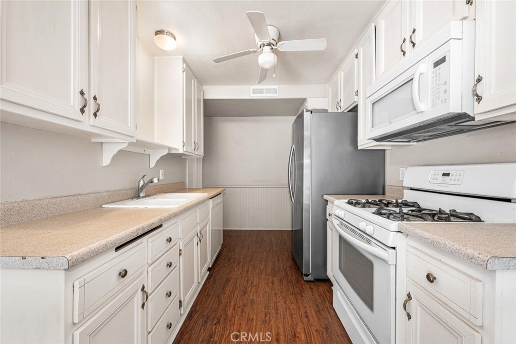 Welcome to Aliso Villas one of South Orange County’s most sought after Condo Communities, Situated in the highly desirable and exclusive membership to Lake Mission Viejo Homeowners Association. Enjoy the active lifestyle and amenities that accommodates all ages including affordable pontoon boat rentals, fishing, summer concerts, and sandy beach with nearby playground, pool and spa, sail boating and so much more. This home is very convenient to gated Association swimming pool, shopping, parks, award winning schools and hiking trails. Main Interior features include, ground level entrance, fresh interior paint, no one living above or below, forced air heating, new flooring in the living room and upstairs bedrooms. Upstairs there are 2 very spacious bedrooms with each room offering generous amount of closet space and a full bathroom. The downstairs living space offers a spacious living room with double French doors leading to the kitchen and dining areas. This home also features direct access from the one car garage into the kitchen making it very convenient and safe when bring items into the home from your vehicle. Exterior features include a quiet and peaceful location far away from any traffic noise, a private and VERY SPACIOUS larger than normally allowed patio/courtyard perfect for adding outdoor living space and entertaining family and friends. And lastly an additional outside dedicated parking space for a second vehicle. Summer’s almost here so take advantage of all the amenities, lifestyle and good times that await you in one of South Orange Counties most sought after communities