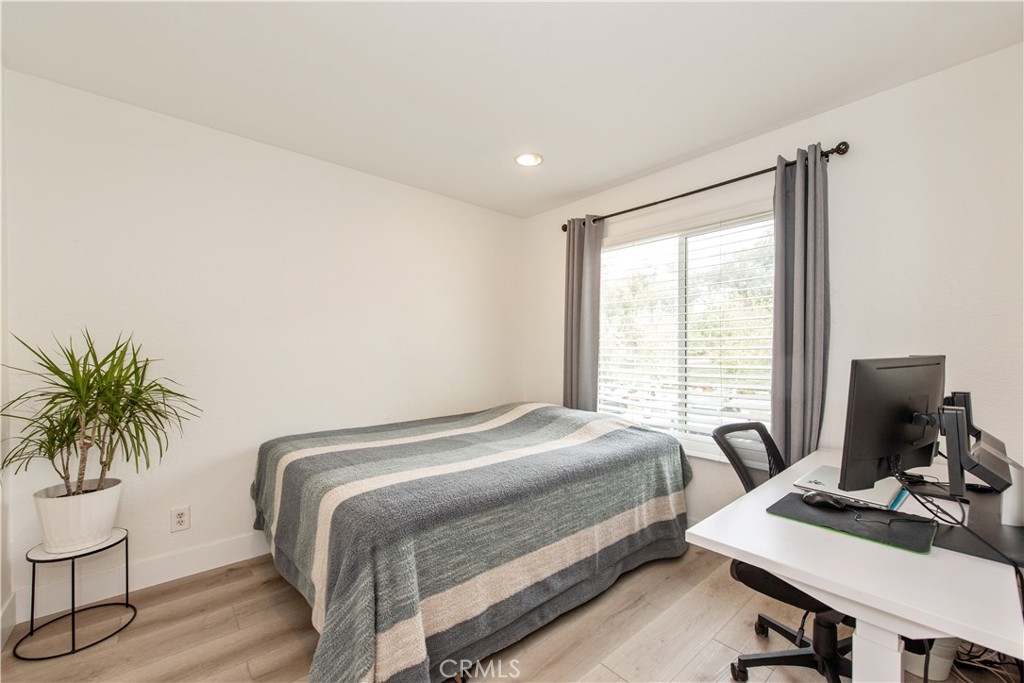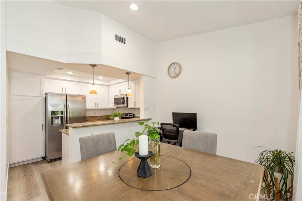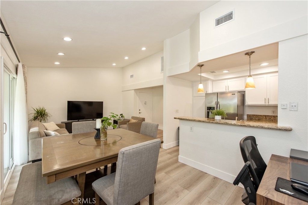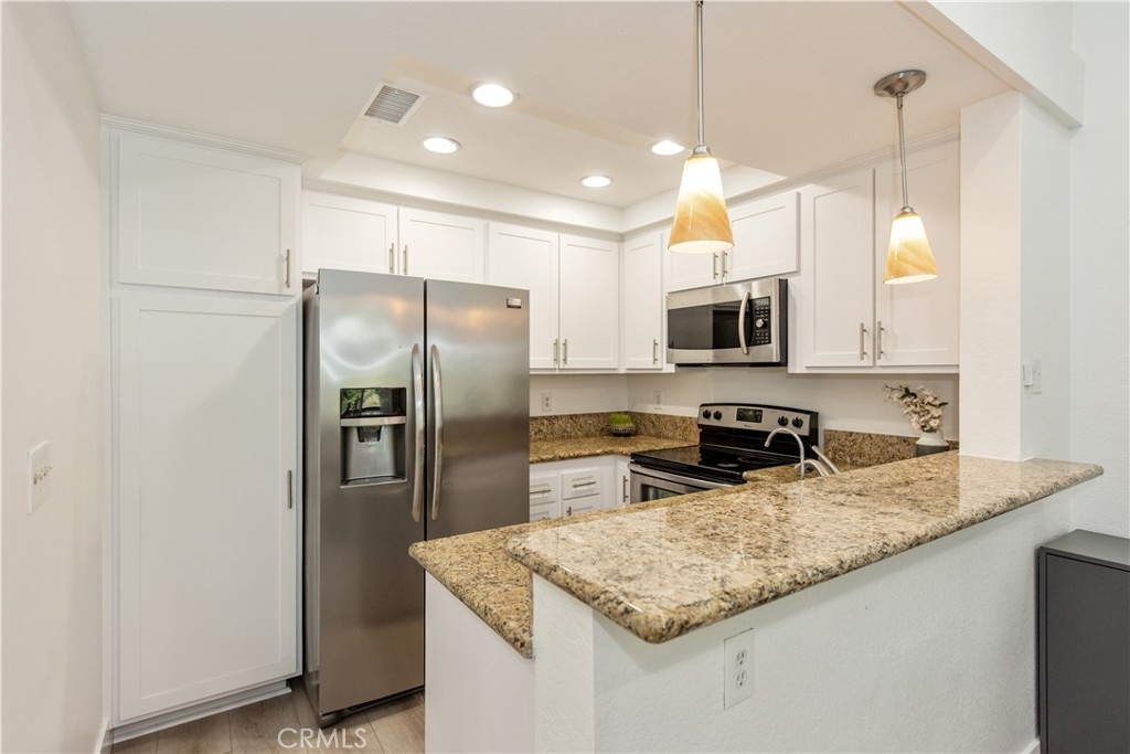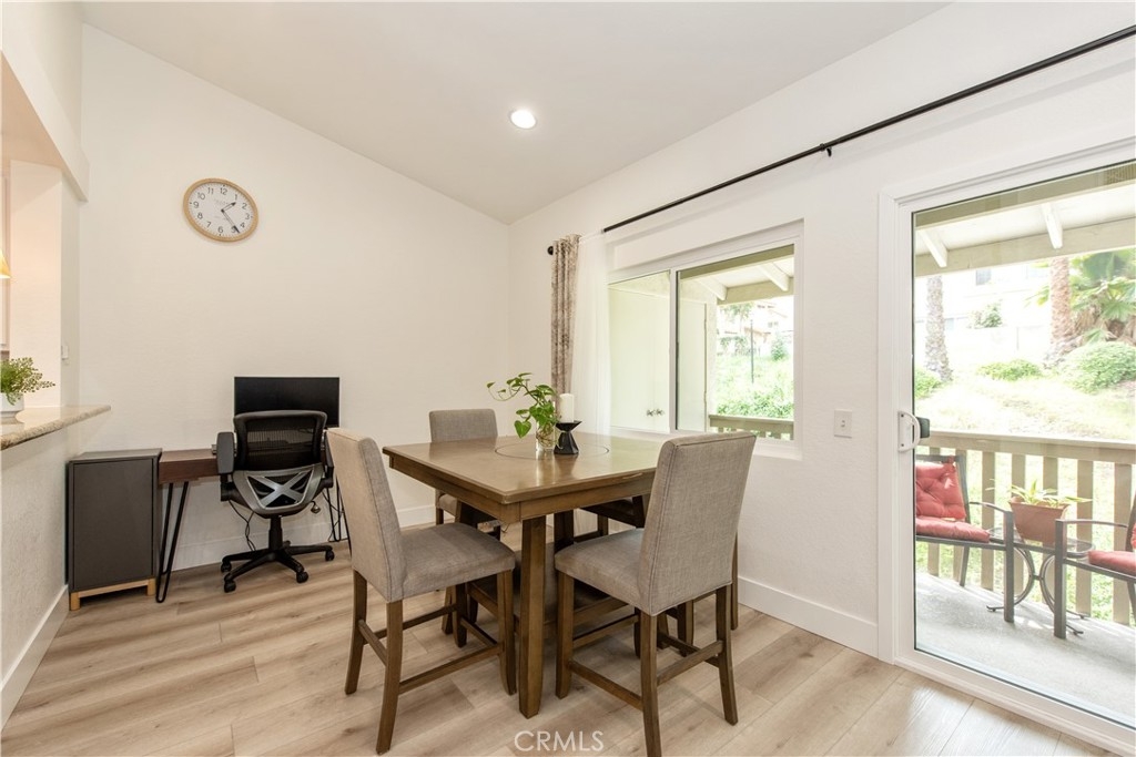 Come see this charming two-bedroom, upper-level end-unit condo nestled in the sought-after Valencia community, offering 812 sq ft of modern living space. Enjoy year-round comfort with a brand-new central air conditioning and heating system—no more unsightly space heaters or coolers. This home has been beautifully updated with new windows in the living room and bedrooms, luxury plank vinyl flooring throughout, new doors and trim, and fresh interior paint. As you enter, you’ll immediately notice the bright and airy feel, enhanced by vaulted ceilings, recessed lighting, and an open-concept floor plan. The kitchen features granite countertops, stainless steel appliances, white shaker cabinets, a double sink, and a breakfast bar accented with contemporary pendant lighting. Step outside to the private balcony off the living and dining areas, where you can relax or BBQ while enjoying peaceful hillside views with mature trees. Additional conveniences include a full-size washer and dryer in a private balcony closet, a designated parking space directly in front of the unit, ample guest parking, and an outdoor storage closet. As a resident, you’ll enjoy exclusive membership to Lake Mission Viejo through the HOA, offering a sandy beach, swimming, boating, kayak and paddleboard rentals, sports courts, picnic areas, summer concerts, and year-round activities. Ideally located with easy access to the 5 Freeway, shopping, dining, and entertainment. Walking distance to Alicia Park and top-rated schools. This thoughtfully updated home offers comfort, style, and an unbeatable location—don’t miss it!