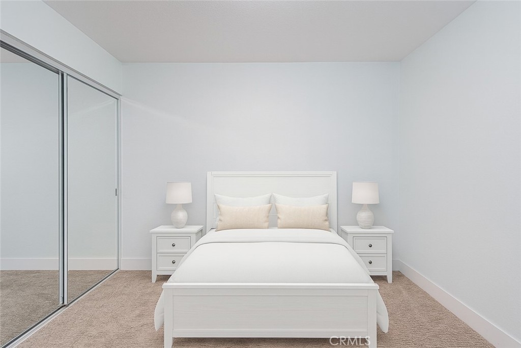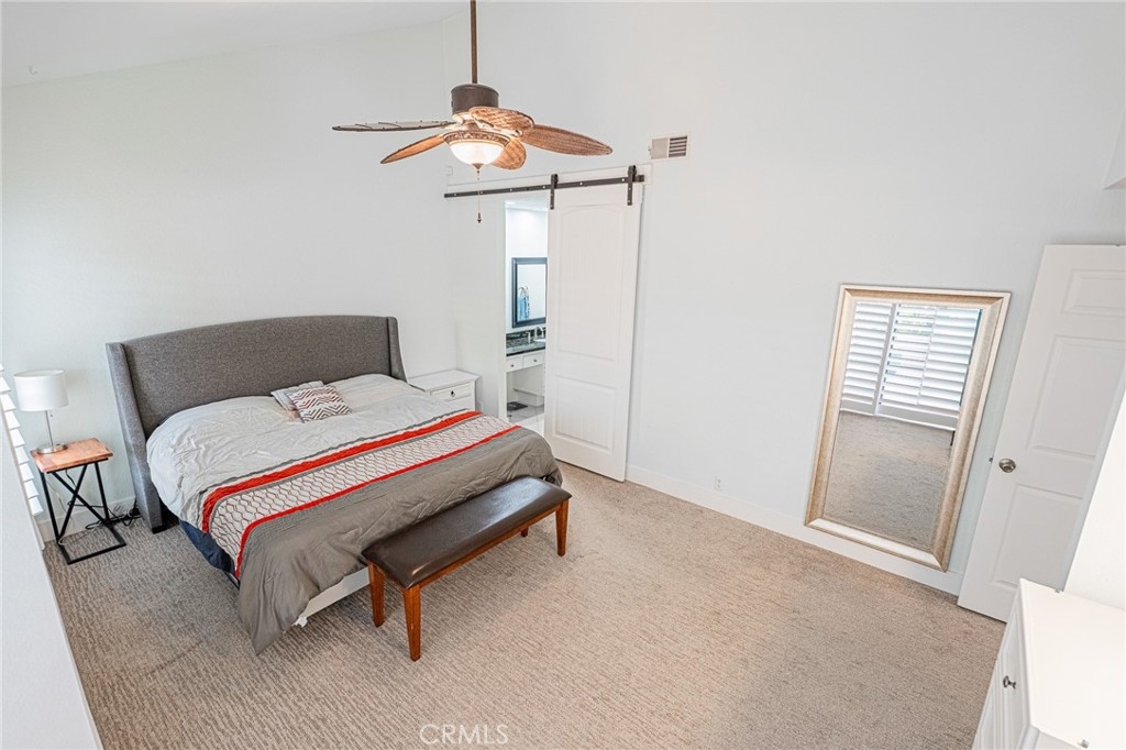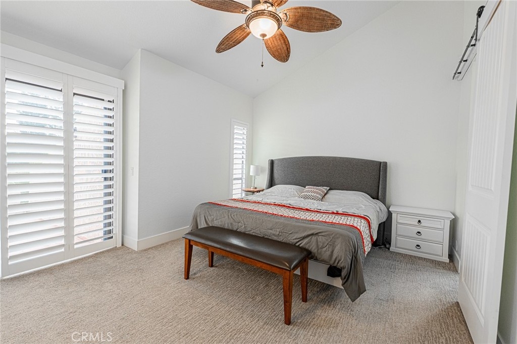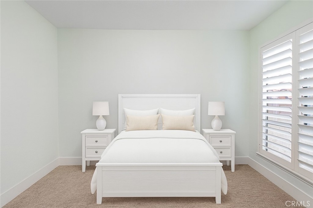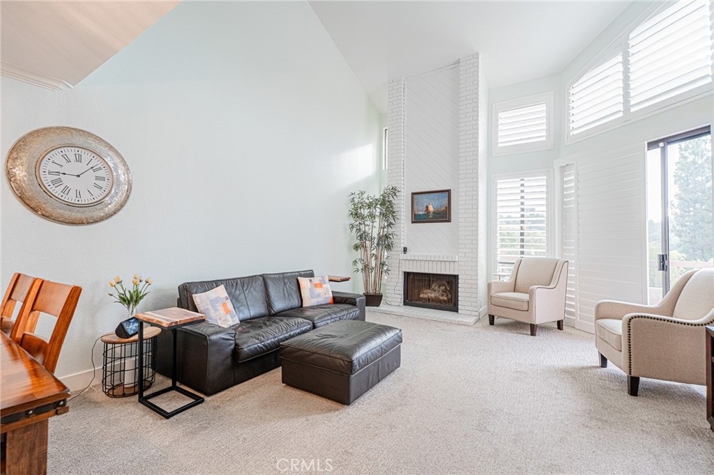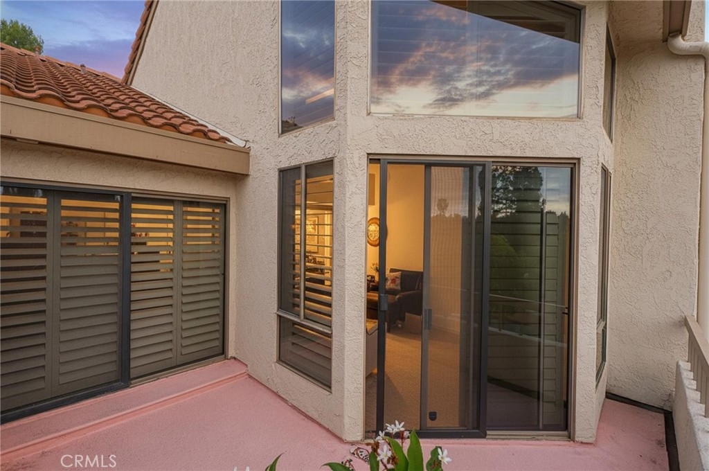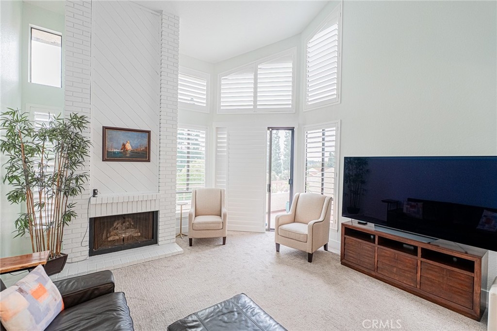 Finisterra on the Green, an elegant gated community situated adjacent to the Lake Mission Viejo Country Club. This beautifully maintained townhouse/condo offers 2 bedrooms, 2 bathrooms, a spacious upstairs loft that has been thoughtfully converted into a 3rd bedroom with beautifully enclosed french doors creating a private bedroom and closet, complemented by a cozy retreat area. Provides flexible space that can easily function as a home office, gym, or creative studio. The kitchen is designed with both style and function in mind, showcasing quartz countertops, recessed lighting, abundant cabinetry, plenty of storage for those kitchen essentials.The layout flows seamlessly into a formal dining area and an expansive living room with impressive high ceilings. A striking fireplace serves as the focal point, while surrounding windows fill the home with natural light and custom wood shutters. Sliding glass doors open to a private balcony, ideal for relaxing or entertaining. The master bedroom offers vaulted ceilings, and direct balcony access. Its ensuite bathroom features quartz countertops, a walk-in-shower, and a custom built closet organizer. The secondary bedroom, located on the opposite side of the home, provides comfort and privacy for guests. The hall bathroom includes a tub-shower combination and granite countertops. Convenient washer and dryer hookups are discreetly located in a hallway closet with additional storage cabinets. Additional features include a detached enclosed single car garage and an assigned covered carport and a new HVAC system, ensuring enhanced comfort and energy efficiency throughout the home. Residents of Finisterra on the Green enjoy exclusive access to Lake Mission Viejo, as well as community amenities including a pool, spa, recreation area just steps from the property. This is an exceptional opportunity to own a home in one of Mission Viejo’s most desirable neighborhoods.