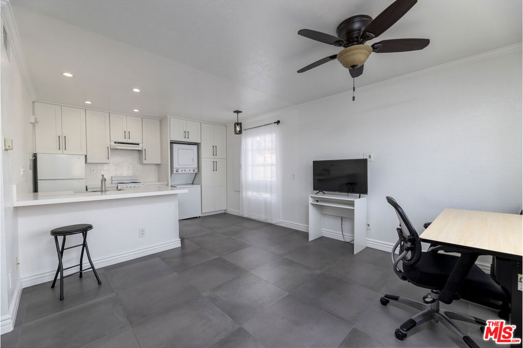 Welcome to the Las Palmas Community in highly desired Mission Viejo. This end-unit was remodeled throughout. From the beautiful tile work in the bathroom to the gorgeous stone floors throughout the unit, this unit feels like a true open living concept with walls being taken down. The home has plenty of storage in its spacious private garage. The remodeled kitchen has stone counters, dishwasher and stackable washer/dryer. An abundance of light pours through the windows into the unit. Additional features include recessed lighting, stackable washer and dryer, ceiling fan, blinds and a small porch.