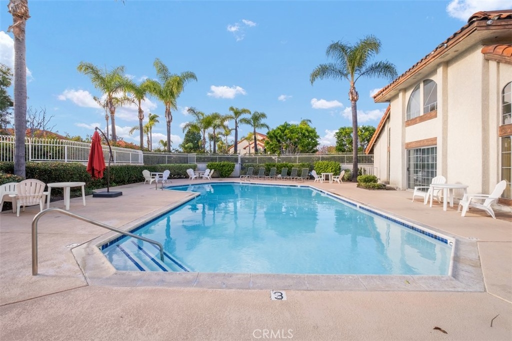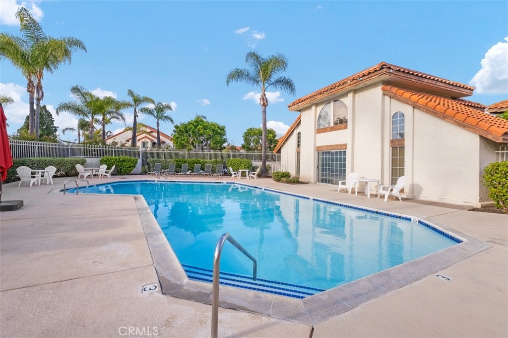 Welcome to this upper level, well maintained 2 bedroom condominium in the prestigious Las Palmas community. Ascend your private staircase from the ground to your front door. Upon entering the living room of your new home, you will be greeted with lots of natural sunlight. The unit boasts a large family room/dining area/kitchen open floor plan with endless opportunities. Each bedroom has an en suite bathroom and generous closet space. The ample size deck overlooks the main community pool and offers a breathtaking view of the mountains in the distance. HOA dues include membership to Lake Mission Viejo and offers access to boating and beaches as well as hiking and biking trails. No Mello Roos tax.
