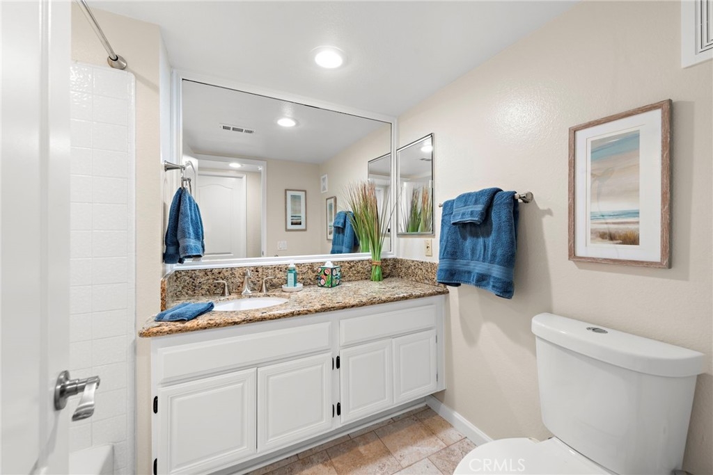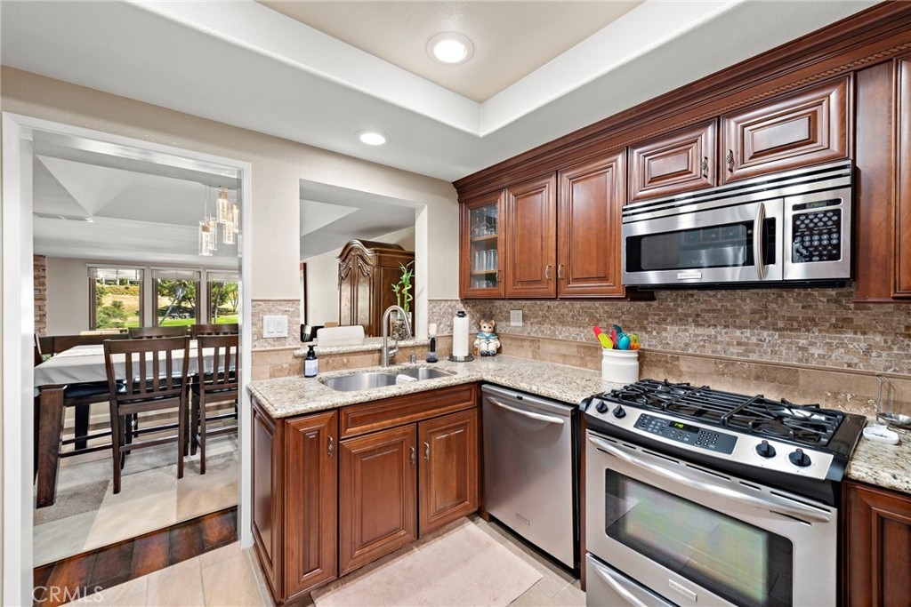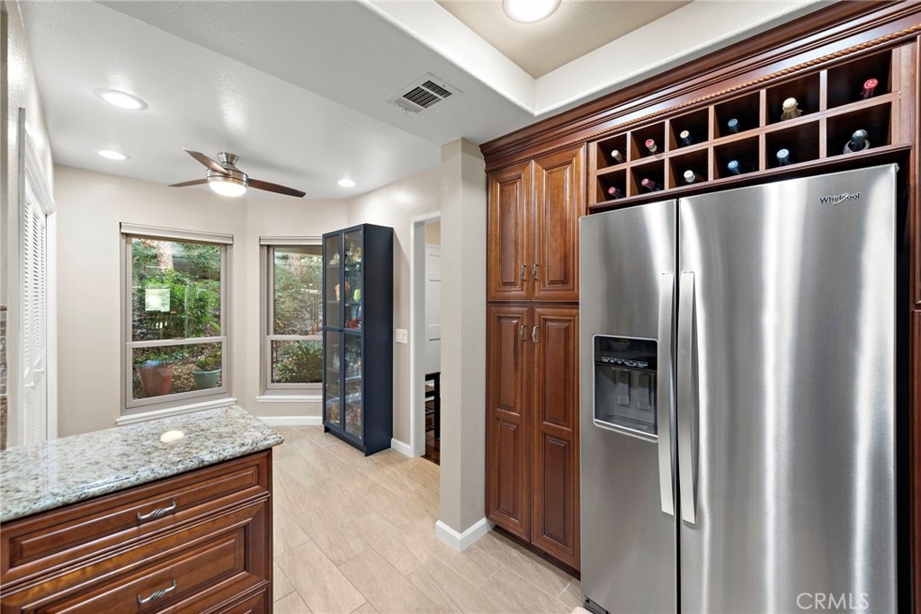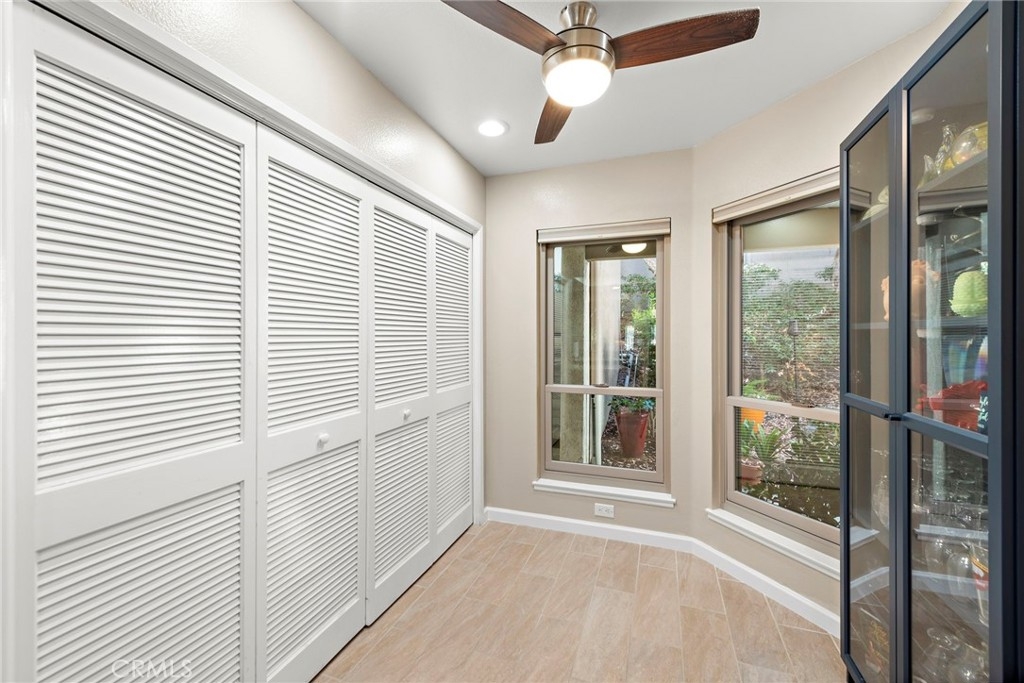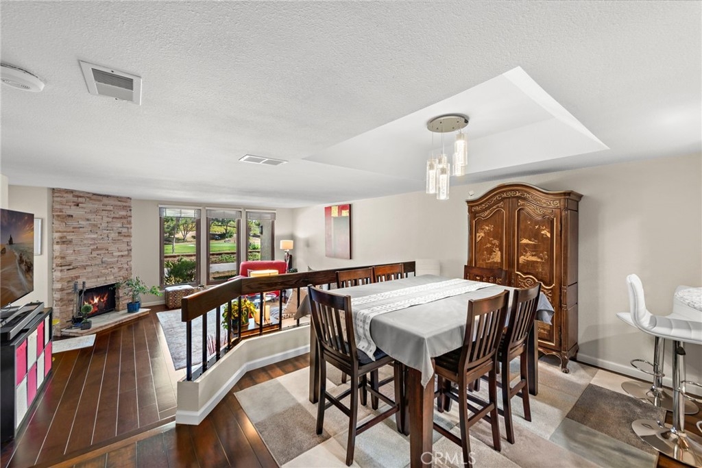 Single-Level Home with Oso Creek Golf Course Views in Finisterra on the Green! Experience the charm of this beautifully remodeled and stunning condominium in the gated Finisterra on the Green community. Enjoy breathtaking golf course views and the elegance of hardwood floors throughout the living areas, with stone flooring in the kitchen. The kitchen features stainless steel appliances, granite countertops, walnut cabinetry with a built-in wine rack, a tumbled stone backsplash, and a cozy eat-in nook. It seamlessly opens to the dining room with a serving bar. The oversized family room boasts hardwood floors, a stack stone gas fireplace, and large windows overlooking the golf course. Step outside through a French door to your private patio, perfect for al fresco dining. The master bedroom also offers golf course views, a sliding door to the patio, and a ceiling fan with remote. The ensuite bath is a spa-like retreat with white quartz counters, a large walk-in closet, a privacy toilet, and a walk-in shower with a frameless glass door, floor-to-ceiling white subway tile, and a mosaic glass surround. Take advantage of the relaxing pool and spa amenities the community offers! AND a 100-yard golf hole exclusive to the community residents!