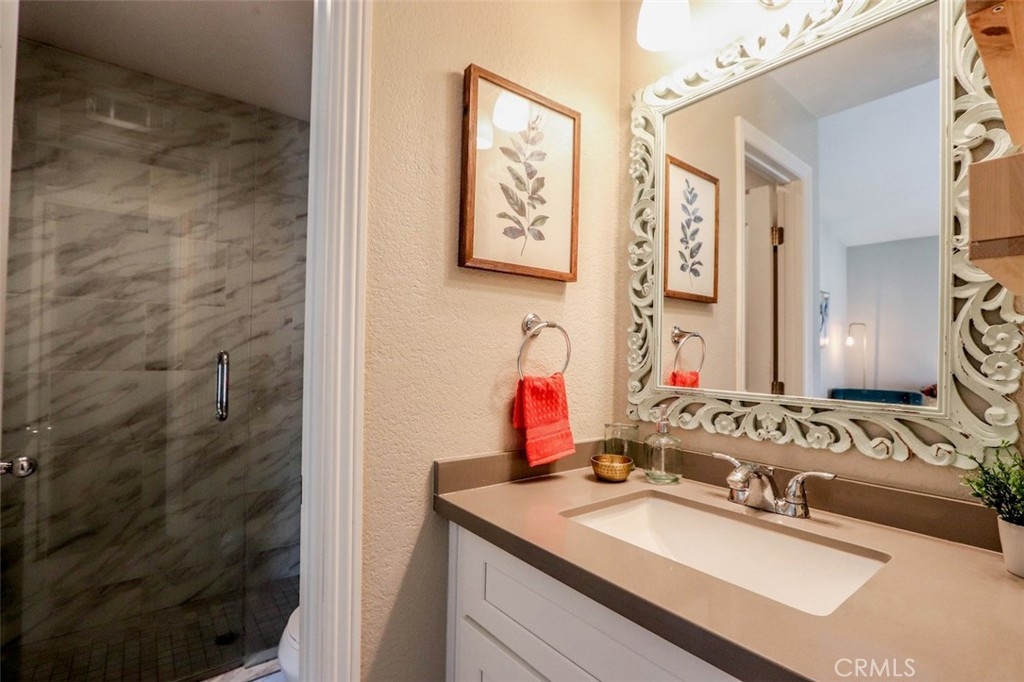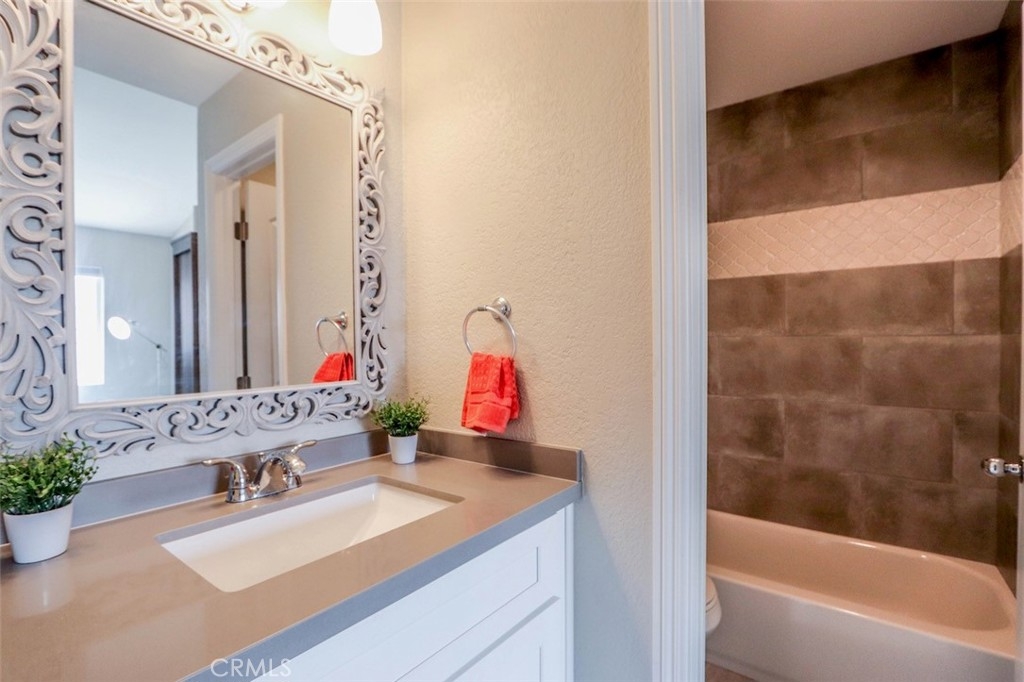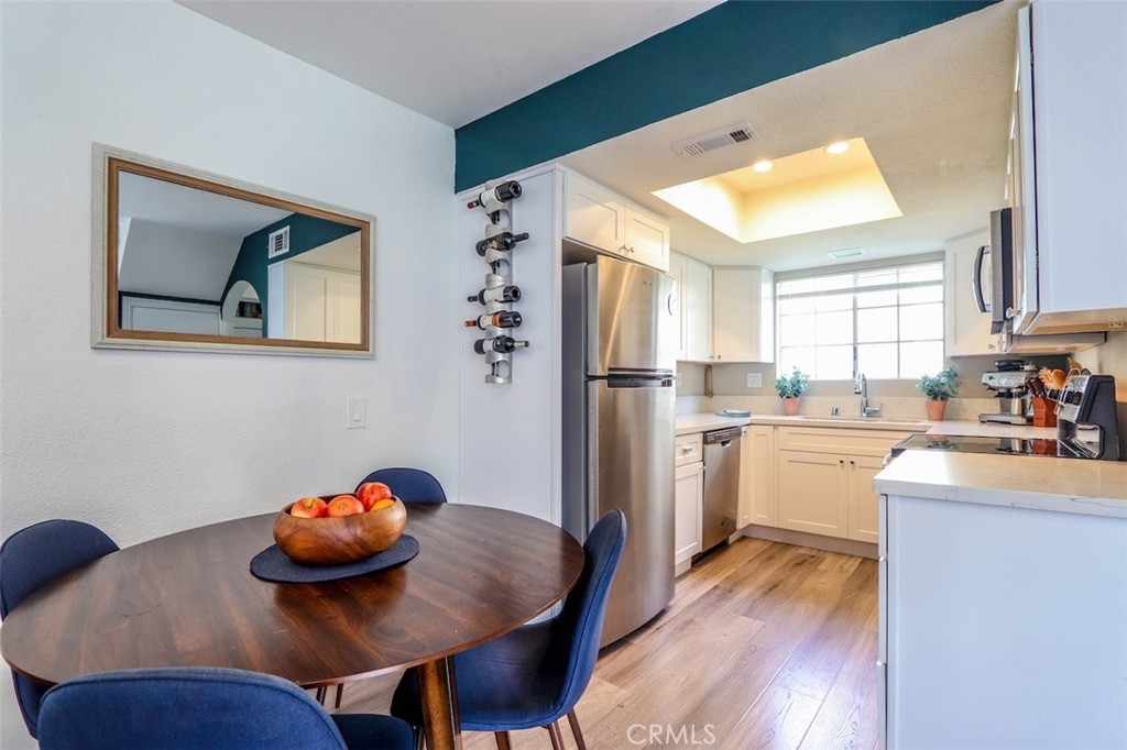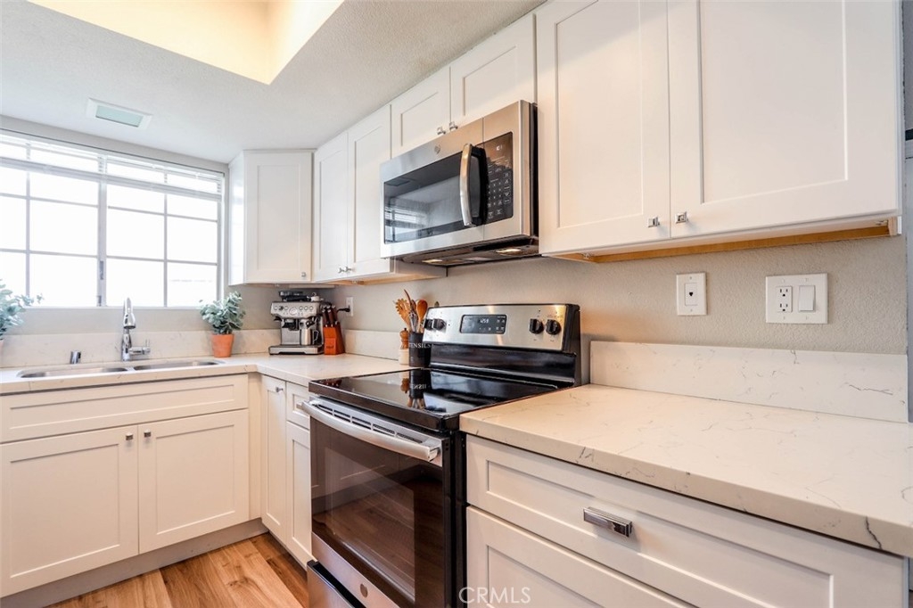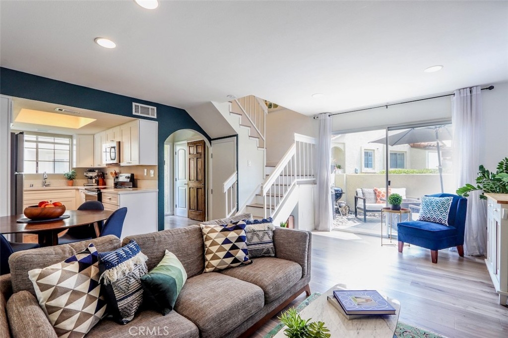 Beautifully remodeled soft contemporary two story condominium professionally upgraded with designer finishes throughout. This home is the largest floorpan in Las Palmas and is in gorgeous move in ready condition! No one living above or below. Main level boasts wide plank luxury vinyl flooring. Remodeled kitchen includes newer stainless steel appliances, white shaker cabinets with soft close feature, quartz countertops, recessed lighting and updated fixtures and faucets. Convenient laundry alcove is elegantly hidden with a custom sliding wood barn door revealing a newer washer and dryer - All Included! Guests will enjoy a beautifully remodeled powder room with white shaker cabinets, quartz countertops and updated fixtures and faucets. Take remote control of the indoor temperature with an included Nest Thermostat and recently updated air conditioning unit. Enjoy outdoor entertaining on the enclosed patio. Upstairs features two well appointed master suites with soaring vaulted ceilings and convenient walk in closets. Tastefully remodeled en suite bathrooms include white shaker cabinets with quartz countertops, contemporary tile flooring and beautifully tiled showers - One walk in shower with glass door and one tub-shower both with updated fixtures and faucets. Association amenities include two pools, spa, clubhouse and access to Lake Mission Viejo. Close to area parks, recreation, hiking, Lake Mission Viejo, restaurants, shopping, freeways, schools and local beaches. Your beautiful new home awaits!