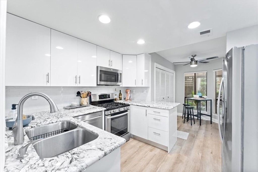 Experience tranquility and serenity in this exquisite home located in the sought-after gated community of Finisterra on the Green, offering breathtaking golf course views. Situated across from Lake Mission Viejo, this stunning residence provides a truly idyllic setting. Step inside to discover a warm and welcoming open floor plan. The chef's kitchen has been tastefully remodeled, boasting elegant "Monte Lotus" granite countertops, self-closing drawers, double sinks, a convenient built-in microwave, and stainless steel appliances. Adjacent to the kitchen, you'll find a delightful breakfast nook and a practical laundry area featuring full-size machines and ample shelving space. The generously sized dining room seamlessly flows into the inviting living room, where large windows bathe the space in natural light, offering mesmerizing views of the picturesque Oso Creek Golf Course. Gather with loved ones around the cozy fireplace, creating cherished memories in this perfect entertainment space. Retreat to the master suite, which presents a spacious walk-in closet, a remodeled step-in shower, double sinks, and access to a private covered patio overlooking a scenic walking path, as well as the enchanting golf course and mountain vistas. Parking is a breeze with an oversized single-car garage, complete with built-in shelves and ample storage room, a covered carport, and plentiful guest parking. Additionally, a side gate provides convenient direct access to the home. The community itself offers a wealth of exceptional amenities, including scenic walking paths, BBQ picnic areas, a heated swimming pool, a hot tub, and even a dedicated driving fairway and community putting green. Take advantage of the membership to the renowned Lake Mission Viejo, which provides access to beaches, swimming, fishing, boating, outdoor movies, concerts, and dazzling fireworks displays. Indulge in a round of golf or enjoy live music while savoring a delicious meal at the recently renovated Terrace on the Green (within walking distance). With its superb location, captivating views, and close proximity to shopping, dining, and recreational opportunities, this extraordinary home is not to be missed. Embrace the epitome of comfortable living with exceptional schools, scenic beaches nearby, convenient freeway access, and an array of amenities just moments away. Don't hesitate to make this your forever home! Take advantage of the low tax rate and no Mello Roos!