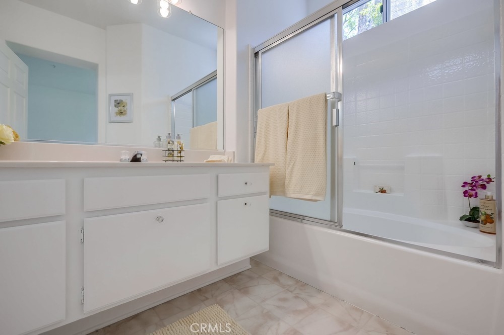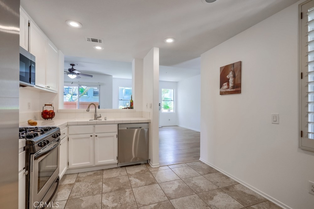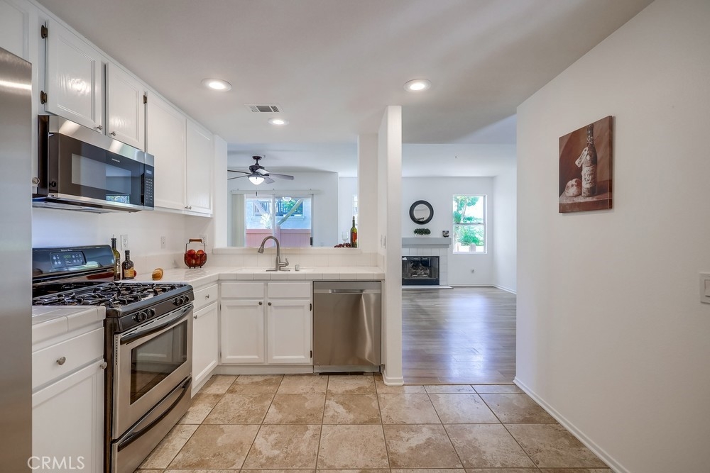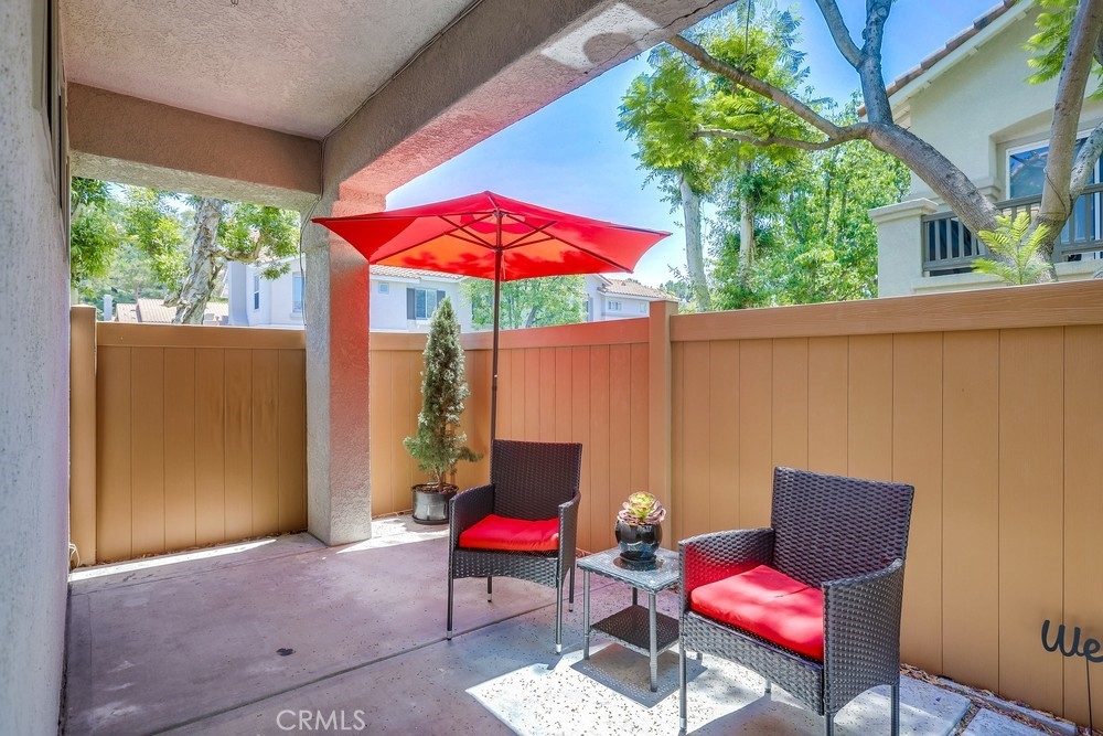RARE OPPORTUNITY FOR THIS SINGLE LEVEL, LOWER LEVEL END UNIT CONDO IN GORGEOUS MISSION VIEJO NORTH! PENDING SALE WITHIN 7 DAYS! Just like new tucked into a secluded corner of this charming So California community! Builder designed 2 bedrooms, 2 and 1/4 baths, separated by the spacious living areas. As you enter this cottage/condo you will delight in the views of the lush exterior plantings as viewed through the massive windows and accented by this home's fireplace. The oversized kitchen is the gourmet's dream, so spacious and inviting with all newer stainless steel appliances, ample counter spaces, pantry, breakfast bar/pass thru and room for a breakfast table too! The kitchen and living room flow to the formal dining room and all with views to your private patio area. The interior has been freshly painted for your new home experience! Also included is the attached and direct access garage which boasts fresh epoxy floors, freshly painted interior, massive built-in cabinets and the included washer and dryer too! All this and nearby is the community swimming pool, fine restaurants, outdoor dining, shopping, churches, Whiting Ranch Wilderness Park, the infamous "Cooks Corner" and of course, inclusive membership to the fun in the sun at Lake Mission Viejo. BEST TO GET IN ON THIS ONE FIRST!