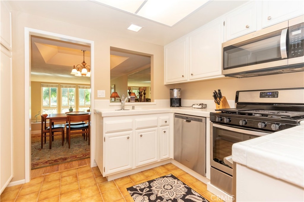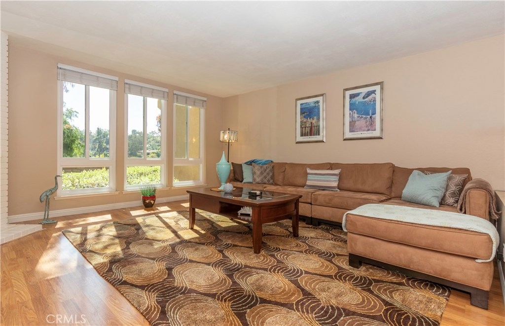Retreat to your peaceful and private view home tucked away in the lovely Baja Finesterra community. This darling and extremely well maintained and nicely updated home features an extra large living room with a stunning golf course view. Painted in soft neutrals with popular wood-style floors crisp white baseboards and interior trim/doors. Energy efficient dual pane windows with new blinds. Kitchen features updated stainless steel appliances which include a stove, microwave, trash compactor and refrigerator, a great kitchen to prepare your favorite meals while enjoying the golf course view. Other great details include, updated counter tops and tile flooring in both bathrooms and freshly painted patio floor and railings. Parking and storage is a breeze with shelving in the garage, one assigned carport, and plenty of nearby guest parking. HOA dues are $450.00/month for exterior maintenance, landscaping and Fire & Hazard insurance, plus with an additional $65.00/month to cover WATER, trash, street sweeping. Enjoy the membership to Lake Mission Viejo, concerts, boating, paddle yoga, sailing and more. Great fun year around. Great starter home or for those downsizing. Convenient location, walk to your favorite coffee house, or the market or hop on the freeway in minutes.