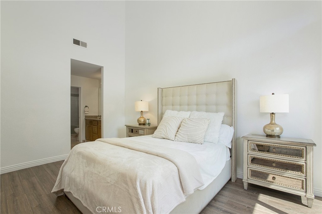 Welcome to your new home in the charming gated community overlooking the serene 5th green at Mission Viejo Country Club. This delightful two-story condo is an end unit, offering a perfect blend of comfort and convenience, making it an ideal retreat for those seeking a cozy lifestyle in a prime location. As you step inside, you are greeted by soaring high ceilings that enhance the spacious feel of the home. The interior has been freshly painted, creating a bright and welcoming atmosphere throughout. The open floor plan seamlessly connects the living areas, providing an ideal space for both relaxation and entertaining. The main level features a lovely living room with large windows that frame the picturesque views of the lush golf course. Imagine sipping your morning coffee while enjoying the tranquil scenery or hosting intimate gatherings with friends and family in this serene setting. The adjacent dining area offers ample space for memorable meals and special occasions. The kitchen is well-appointed with modern appliances, sleek countertops, and plenty of storage. Whether you're preparing a quick breakfast or a family dinner, this kitchen is designed to meet your everyday needs. This home boasts two generously sized bedrooms, providing comfort and privacy for all residents. The master suite is a true retreat. The second bedroom is equally spacious and versatile, perfect for guests, a home office, or a cozy reading nook. One of the standout features of this condo is the expansive loft area on the upper level. This versatile space can be used as a family room, media center, or even a home gym. The possibilities are endless, allowing you to tailor it to your specific needs and lifestyle. Living in this wonderful gated community comes with numerous perks. Enjoy easy freeway access for a stress-free commute, and take advantage of the proximity to shopping centers, entertainment venues, and dining options. Additionally, residents have access to the beautiful Lake Mission Viejo, where you can indulge in a variety of recreational activities such as boating, fishing, and lakeside picnics. This condo offers a serene and comfortable living environment with all the conveniences of urban living just moments away. Don't miss the opportunity to make this charming condo your new home. Schedule a viewing today and experience the welcoming lifestyle that awaits you.
