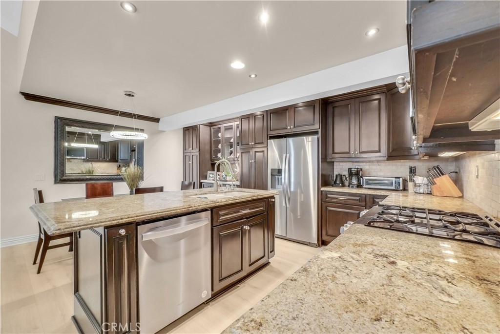 Discover the perfect blend of sophistication and style in this beautifully upgraded 3-bedroom, 2-bathroom condo, offering 1,220 sq. ft. of open-concept living in one of Mission Viejo’s most desirable neighborhoods. Step inside to an inviting open floor plan that seamlessly connects the living, dining, and kitchen areas—perfect for entertaining and everyday living. The spacious chef’s kitchen boasts a stunning oversized island, ideal for gatherings and culinary creativity. Enjoy the warmth of brand-new laminate flooring throughout and the fresh, modern appeal of new interior paint that enhances every room. Comfort is assured year-round with a new HVAC system ensuring efficiency and peace of mind. The primary suite offers a private retreat, complemented by two additional bedrooms perfect for guests, family, or a home office. Step outside to your private backyard oasis, newly finished with elegant hardscape pavers and low-maintenance synthetic grass, ideal for outdoor dining or peaceful relaxation. Additional highlights include a two-car garage with direct access, a quiet cul-de-sac location for added privacy, and easy access to the freeway, award-winning schools, shopping, and dining. Experience modern elegance, comfort, and convenience—all in the heart of Mission Viejo.
