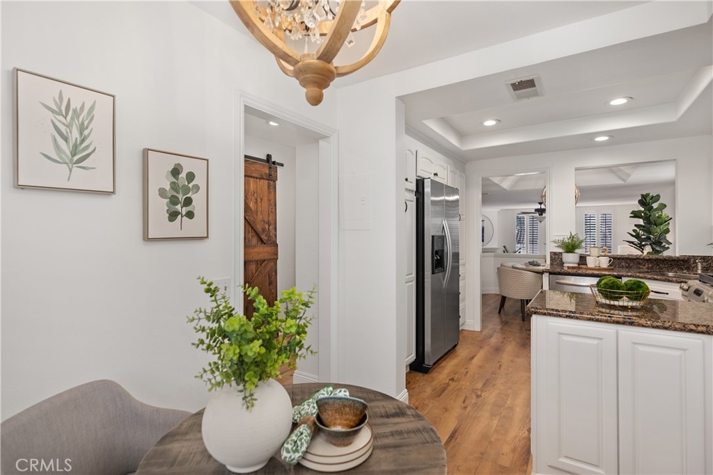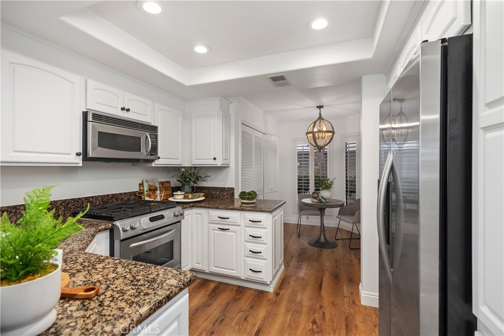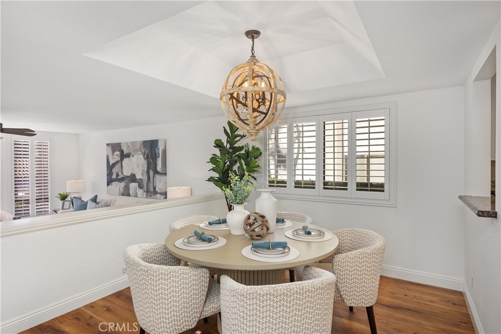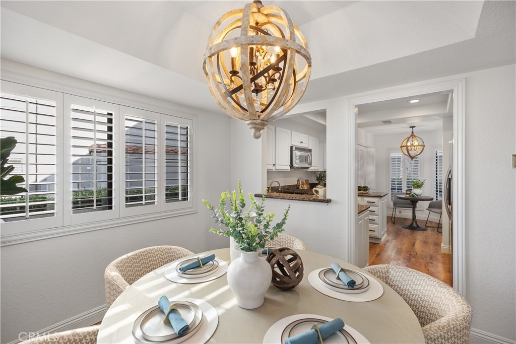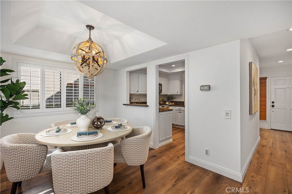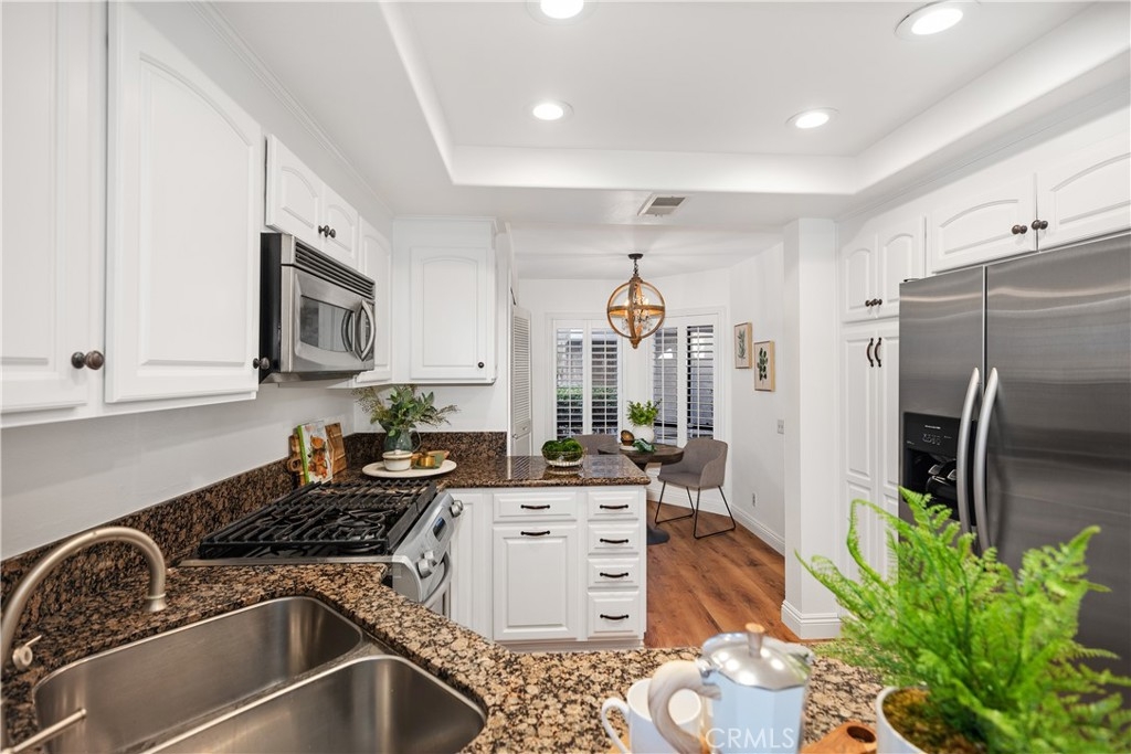 Bright and airy, this beautifully remodeled condominium exudes a clear feeling of openness with each step throughout while boasting a uniquely private location in the very popular, gated community of Finisterra on the Green - Baja that overlooks the prestigious and private Mission Viejo Country Club and golf course. This designer model home has all the fine finishes and fixtures with a modern and clean color palette, freshly painted walls and beautiful laminate type flooring. This is the one you have been looking for! The open and spacious floor plan is laid out all on one level and features a generously sized primary suite, spacious secondary bedroom along with two upgraded bathrooms, huge living room with fireplace, separate formal dining room, remodeled kitchen with breakfast nook and laundry closet. There are too many quality upgrades to list, so come see for yourself! Please note: this property is ground level with no exterior stairs or steps to the entryway (only a couple small steps inside the property to access the huge living room). Excellent central location with close proximity to local shopping centers, the 5 Freeway, grocery stores, parks, schools, Mission Viejo Mall, and Lake Mission Viejo! Enjoy Lake Mission Viejo private membership included with members only access to boating, fishing, sailing, paddle boarding, swimming, private beaches, summertime concerts, movies, holiday festivities & 4th of July firework extravaganza! Enjoy one of the lowest property tax rates in the entire county and no Mello Roos! HOA dues include water and trash utilities.
