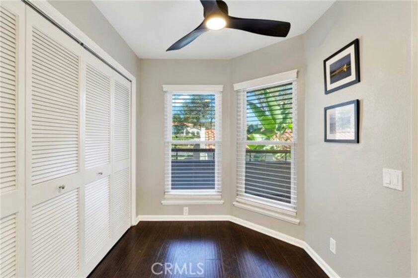 Welcome to this spacious 3-bedroom, 2-bath upper-level condo located in the heart of Mission Viejo, just steps from the Mission Viejo Country Club. Enjoy a light and bright open layout with soaring high ceilings, recessed lighting, new window blinds, and upgraded double-pane windows from Renewal by Andersen throughout. The home features wood based laminate floors spanning the main living areas and bedrooms, with cozy carpet on the stairs and in the spacious loft, perfect for a home office, bonus room, or additional living space. The kitchen includes light granite countertops, ample storage, and a seamless flow into the dining and living areas. Retreat to the beautifully remodeled primary bathroom, offering modern finishes and a spa like feel with a walk-in closet by California Closets. Two additional bedrooms provide comfort and flexibility for family, guests, or work-from-home needs. Relax on your private balcony accessible from the primary bedroom and living areas with a peek-a-boo view of the golf course. Enjoy peaceful surroundings and the convenience of being near community amenities, shopping, dining, and access to Lake Mission Viejo for boating, beaches, and year-round recreation. This upgraded condo blends comfort, style, and location - an exceptional opportunity in a sought-after neighborhood. You don't want to miss it!