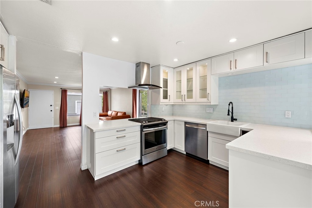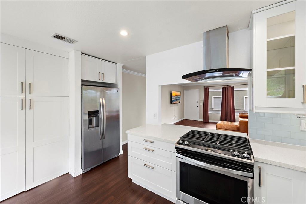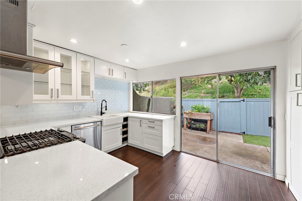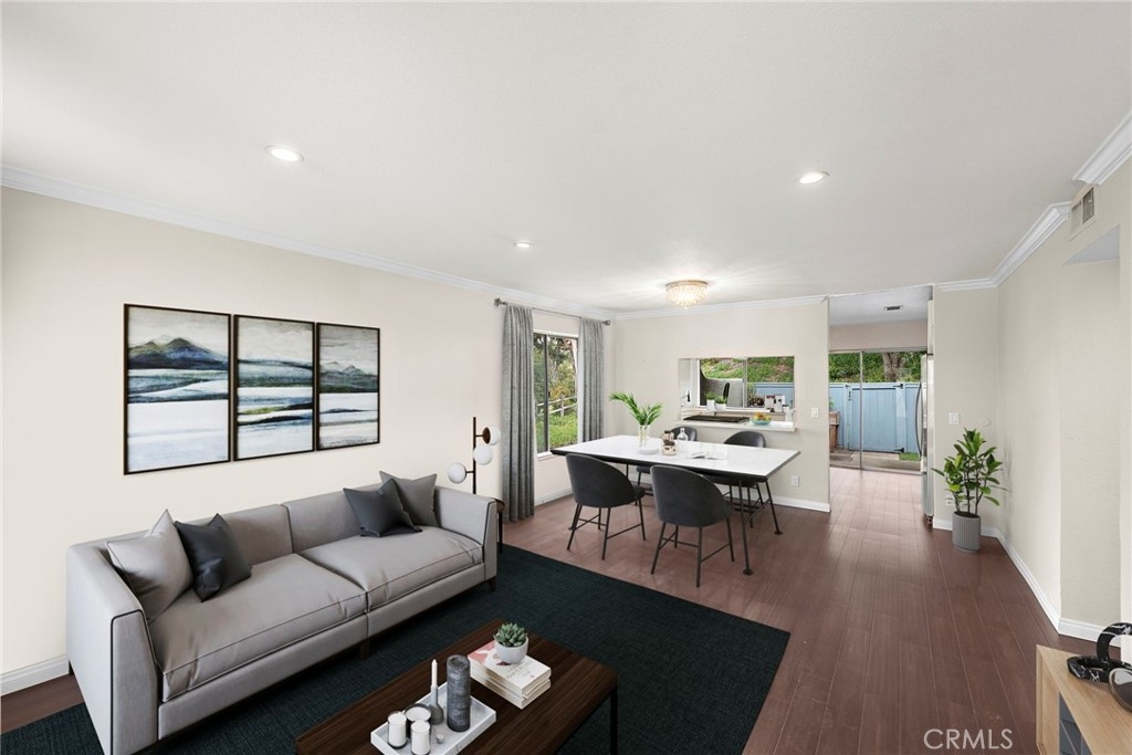 Rare Single Level/Ground Level End-Unit residence in Aliso Villas with no one above or below. Single level living offering easy access and only one common wall. Highly updated kitchen with quartz counter-tops, full subway tile backsplash, customized white shaker cabinetry, and stainless steel appliances. Remodeled bathroom with marble flooring and counter top, custome vanity, and jetted tub. Additional upgrades and features include PEX re-pipe, wood flooring, recessed lighting throughout home, in-unit laundry, epoxy garage floor, and private enclosed yard with artificial turf. Residents of Aliso Villas enjoy access to a community pool, tot pool, and playground, as well as membership to the Lake Mission Viejo Homeowners Association, providing expansive amenities such as private beaches, and a variety of community activities including boating, fishing, and summer concerts.
