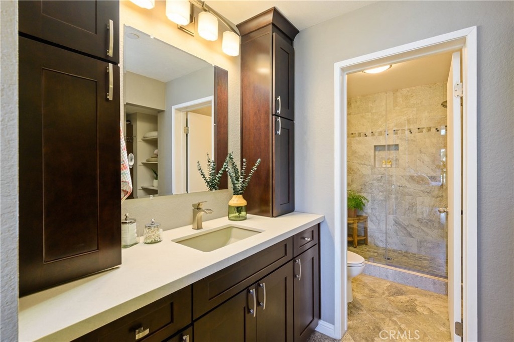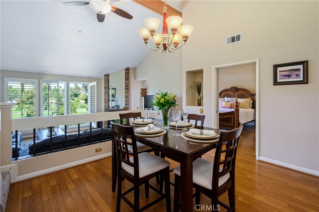 Darling I love you, but give me those Penthouse Views! Breathtaking views of the 13th hole Tee... Welcome to Baja Finisterra on the Green, a quaint gated community located in the heart of Mission Viejo, overlooking the MV Country Club & Golf Course. Experience all the city has to offer, like the North Paseo Farmers Market, Felipe Tennis Center, Oso Creek Trails, Oso Creek Golf Course, firework displays, not to mention the endless amenities offered at Lake MV. Also known for our award winning schools, multiple sports parks, La Paz Dog Park and the Norman P. Murray Community & Senior Center! Convenient freeway access and walking distance to shopping, trails, restaurants and more. This spacious two-level Penthouse Condo with 2 bedrooms/2 baths on the main floor is warm & inviting, tastefully updated and move-in ready. The large Loft with brand new carpeting also has an unfinished attic, which can easily be turned into a bedroom, private office or workout room, plus there's additional storage in the crawl space. You'll love how open the dining and living room feel, thanks to the two-story beamed ceiling and an abundance of natural light. You can't help but notice the large picture windows and golf course views! Additional features include custom shutters, warm bamboo & porcelain tile flooring, a Smart WEMO whole house fan, dual pane windows, skylight, custom front door and deco steel security doors. The remodeled kitchen has espresso shaker cabinetry, colored glass backsplash, stainless steel LG appliances, Dekton counter tops, a farm sink, double oven and a 5 burner gas stove. Cozy breakfast nook with laundry closet and more storage shelving. The large primary bedroom has private ensuite, vaulted ceilings, Smart window blinds, access to the balcony and views of the golf course. Primary bathroom has been remodeled with a porcelain tile walk-in shower, seamless glass doors, espresso shaker cabinetry, Dekton counter top, and custom closet organizer. Light & bright secondary bedroom with custom built-ins, also makes a great office! Guest bathroom similarly remodeled to match the master with a shower in tub. Let's not forget the built-in attic/storage space in the garage, light & ladder added for ease of access. Baja community PEX re-piping complete. Water & Trash are paid with HOA dues. No Mello Roos! Newer Lennox A/C and furnace. From your balcony admire the views, soak up the sunsets, relax & enjoy your evenings away...What's not to Love!