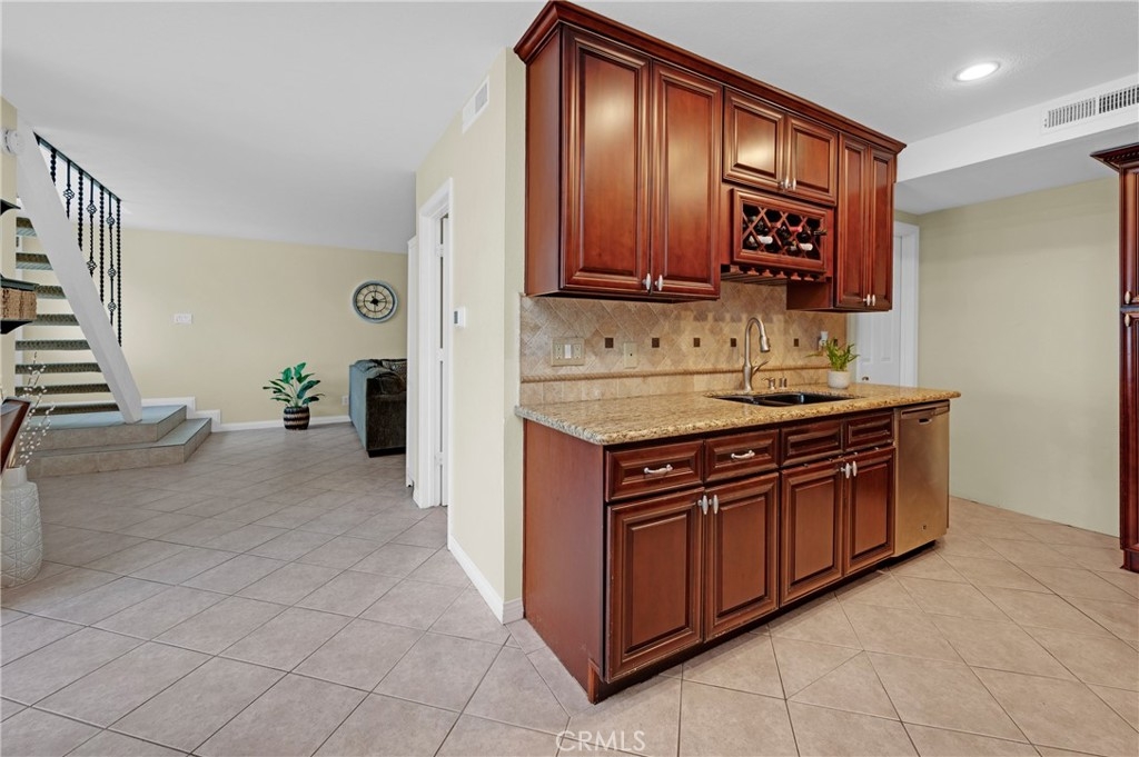 Discover your new lifestyle in Mission Viejo with this stunning remodeled Aliso Villas 3 bedroom townhome! The first level of this amazing home features an open concept floor plan. Upon entry the spacious family room is bathed in natural light and flows into the dining room, powder room and remodeled kitchen. The renovated kitchen boasts of updated cabinetry, granite counters, large pantry, wine rack, stainless steel appliances and recessed lighting. From the dining room open the large glass sliding doors to uncover a private outdoor patio enclosed with a new vinyl fence where you can enjoy entertaining or just relaxing. The upper level hosts a stunning master bedroom with a double door entry and a walk in closet. The spacious full bathroom has been updated with newer cabinets, counters and fixtures. Both secondary bedrooms have large windows and ceiling fans. The direct access oversized one car garage includes plenty of storage with built in cabinets and over head storage racks. Another assigned parking spot is located directly in front of the home. Other updates include new water heater and A/C unit. This community includes a a sparkling pool, numerous greenbelts and a new children's playground. Ownership comes complete with membership to Lake Mission Viejo, offering many activities throughout the year including the use of two beach locations, boating, fishing, summer camps/ classes and concerts.