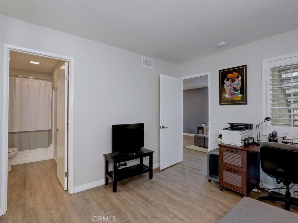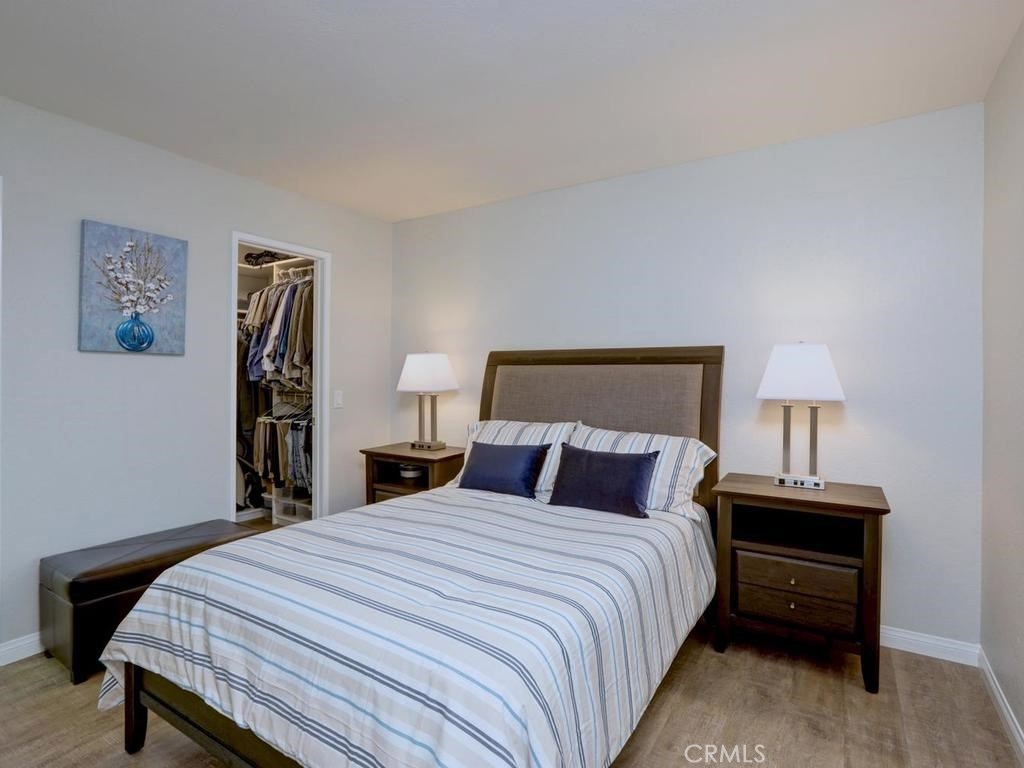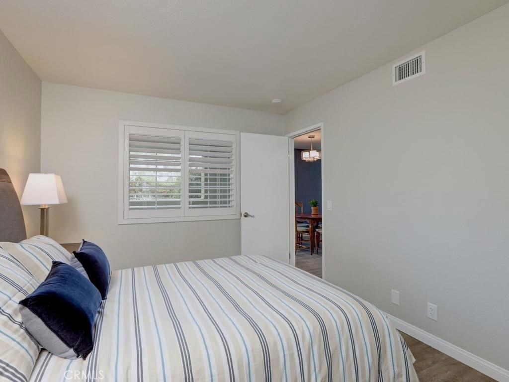 Panoramic view, completely remodeled, dream home is a once-in-a-lifetime opportunity. Walk up to this ground floor home and you will notice the private view location away from cars and walkways. When entering, you'll be dazzled by a stunning remodel recently completed, highlighted by an open floor plan with new LVP floors and designer paint throughout. Light spills through the new dual-paned energy-efficient windows and slider, all adorned by new plantation shutters. Additional light, provided by new lighting in the kitchen, dining room, and bathrooms, highlights the home's many upgrades, including new quartz counters and resurfaced cabinets in the kitchen and baths. The dual master bedrooms both are en suite with new toilets, resurfaced showers and tubs, and new exhaust fans. Hidden upgrades include new PEX piping throughout, a new AC, and a high-efficiency dryer. Located in the Las Palmas community, with its two pools and clubhouse, this home has two parking spots, including one with storage, and the HOA dues include water and trash. Las Palmas is also FHA and VA approved. Come see the best home of its size to come on the market this year.