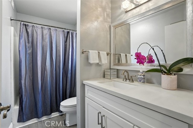 Beautifully Remodeled Upper-Level Cresta Model. Light and bright 2-bedroom, 2-bath condo located in the sought-after Las Palmas community. This upper-level home features vaulted ceilings, an upgraded kitchen with newer white cabinetry, quartz countertops, recessed lighting, an electric 4-burner stove, and a built-in microwave. A convenient laundry closet is located right in the kitchen for easy access. Enjoy newer double-pane windows and a sliding door that opens to your private balcony/patio—perfect for fresh air, evening BBQs, or simply relaxing outdoors. The home offers laminate flooring throughout for a modern and low-maintenance touch. You'll have one carport plus one assigned parking space for your convenience. The monthly HOA includes water and trash service, and residents enjoy 2 pools, 2 spas, and a clubhouse, plus membership to Lake Mission Viejo, where you can enjoy concerts, fishing, boating, paddleboarding, and so much more. Close to shopping, dining, schools, and parks, with easy access to the freeway. FHA approved and no Mello-Roos. Mission Viejo isn’t just a place to live—it’s a lifestyle!