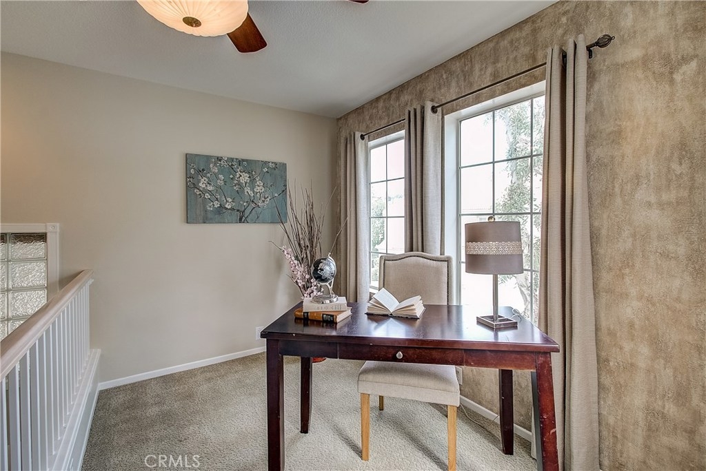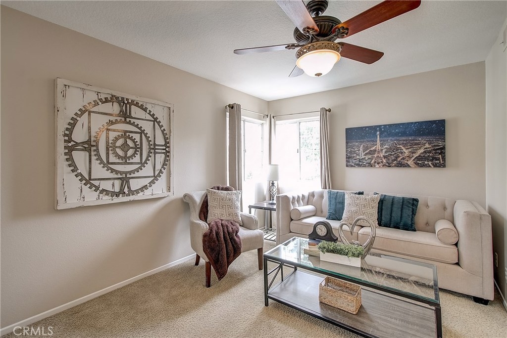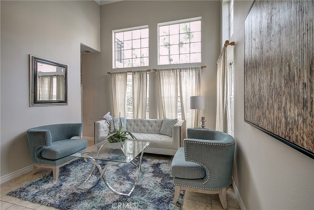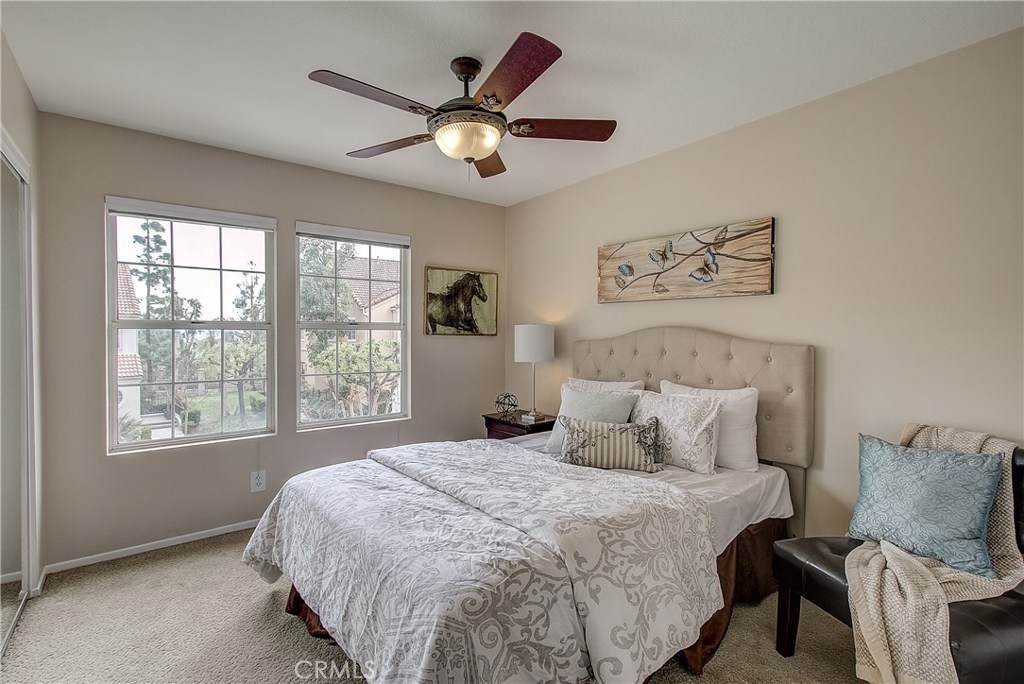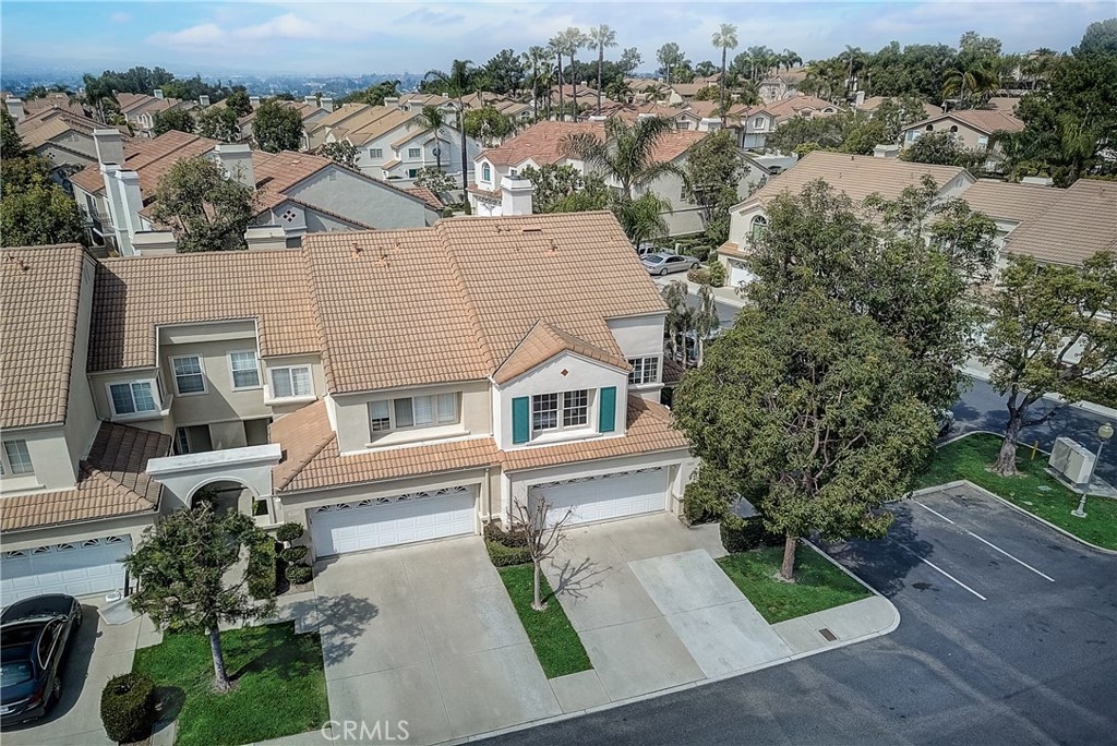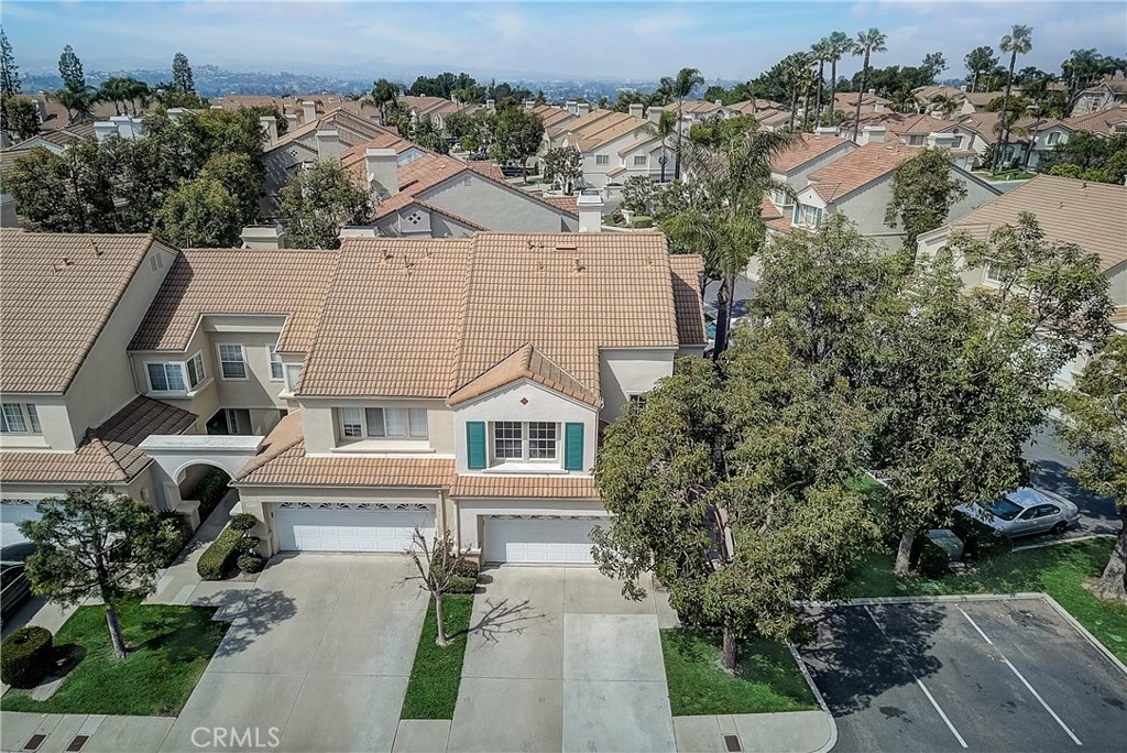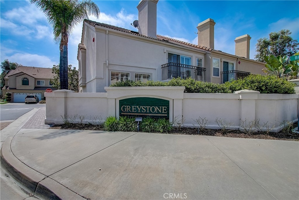 Fantastic end-unit townhome located in the Greystone neighborhood of Mission Viejo. Fresh neutral interior paint throughout complements the bright and open floorplan. Enter into the inviting living room featuring vaulted ceilings and crown molding. The kitchen is well-appointed with newer quartz counters, dual ovens and opens to the dining room featuring a cozy fireplace and sliding doors to the backyard. Upstairs is a spacious loft, which could be easily converted to a third bedroom, as well as an office nook. Down the hall, the master bedroom features sliding doors to a private balcony and an en-suite master bathroom with a walk-in shower. The secondary bedroom is generously size and adjacent to the full hall bathroom. Also featuring a convenient two-car attached garage with a rare driveway. Enjoy the spacious and private backyard as well as the nearby community pool. Short distance to award-winning schools including Bathgate Elementary Fred Newhart Middle School, and Capo Valley High School, shopping, entertainment and Mission Viejo Lake privileges. Low tax rate and no Mello Roos!