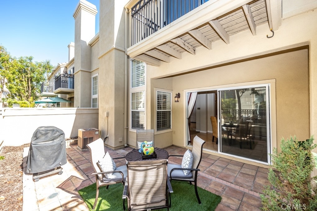 Welcome to this gorgeous home with Lake Mission Viejo membership eligibility in the highly sought-after Califia community in Mission Viejo. Nestled on a little cul de sac street within this quaint community. This attached single-family residence home has everything you are looking for. Entering the home, you are greeted by high ceilings and great natural lighting coming in from all the windows. The living room features plantation shutters, carpet, and a gas fireplace with a stone hearth. The dining room features tile flooring, recessed lighting, crown molding, and a glass sliding door leading to the relaxing outdoor patio with tile flooring and a small greenbelt separating the patios across the way. The kitchen features granite counters with a breakfast bar, stainless steel appliances, recessed lighting, crown molding, and lots of counter space and cabinets. The downstairs guest bathroom features tile flooring and granite counters. Continuing upstairs you have a spacious loft great for a seating area or an office with nice natural lighting. The first master bedroom features carpet, a ceiling fan, dual closets, and a glass sliding door leading to a cozy balcony. The master bathroom features dual sinks with granite counters, an enclosed private toilet room, and a beautiful walk-in tiled shower with a built-in seating bench. The second bedroom with an ensuite is on the other side across from the loft for extra privacy between bedrooms. The second bedroom features carpet and a ceiling fan. The ensuite bathroom features tile flooring, granite counters, and a beautifully tiled shower in tub. Two-car garage with direct access and washer and dryer hook-ups. Greystone association pool and spa along with Lake Mission Viejo membership which offers activities such as boating, fishing, concert events, and outdoor recreations. Rental reservations include party boats, picnic areas, and a clubhouse. All within a short distance to great schools, shopping, and restaurants.