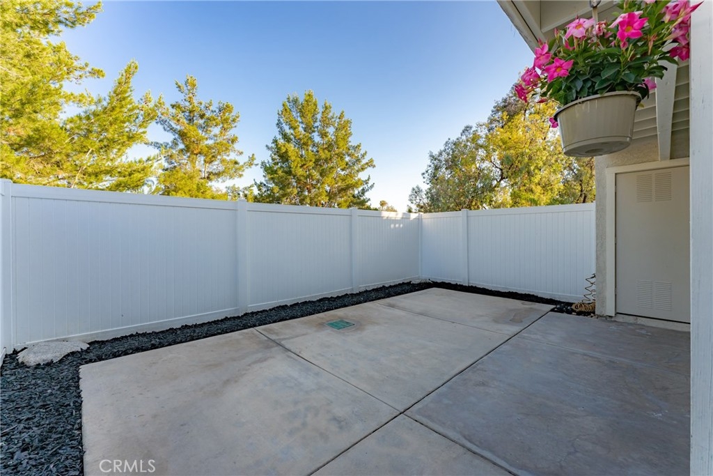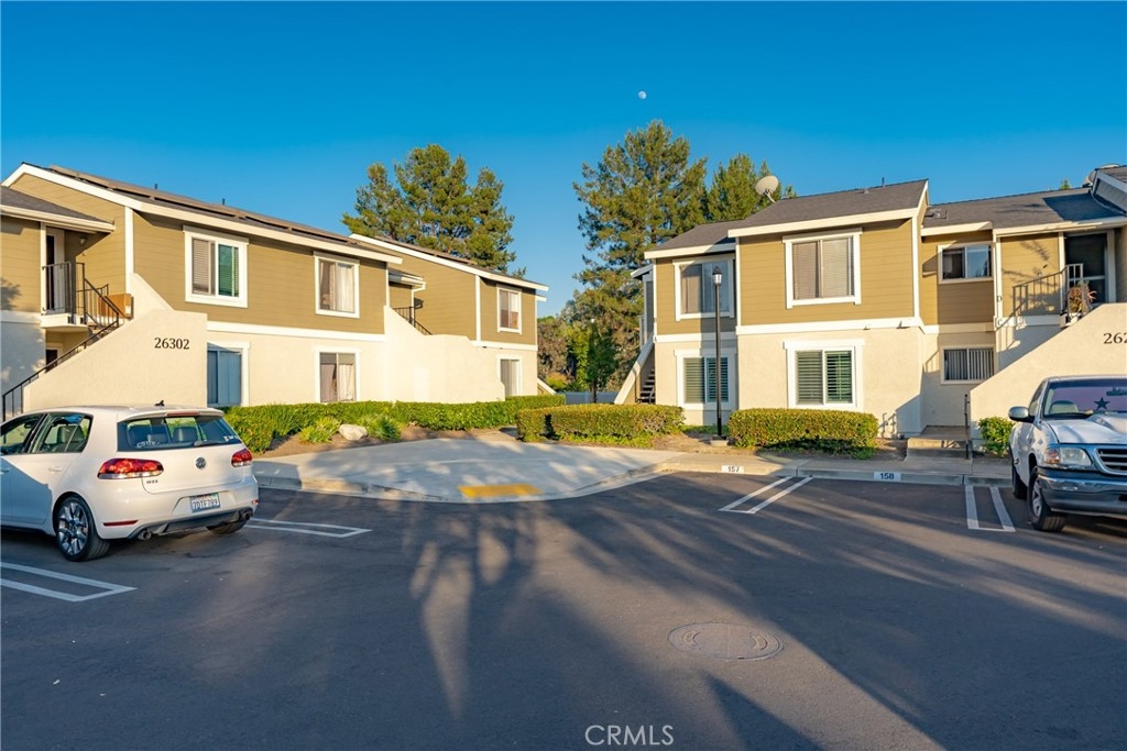 Fabulous charming condo in the Valencia community, less than 2 miles from Lake Mission Viejo! Desirable ground level, Two bedrooms, one bath (recently remodeled with marble shower), end unit, open kitchen to the dining area and a large patio that backs to a quiet greenbelt. 1 Assigned parking space #158 is included. Perfect starter home or investment. This home was just repainted, inside and out, along with new fencing in the backyard and the community was recently re-piped. HOA amenities offer access to beautiful Lake Mission Viejo, a Car Washing Station, trash services, and walking trails. Must see!