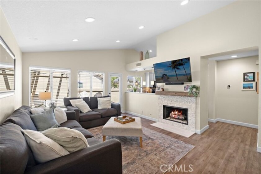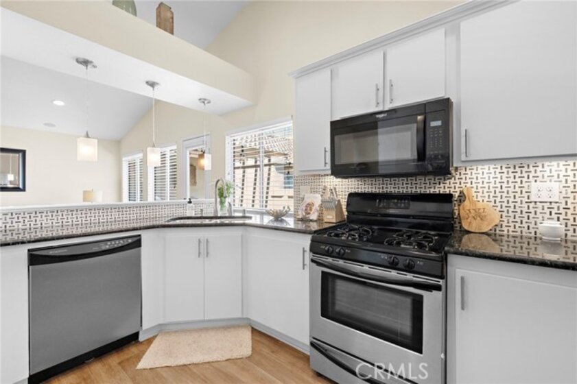 Beautiful 2-bedroom, 2-bath condo in the desirable Ashton community of Mission Viejo! This end-unit home features vaulted ceilings, an open layout, and the rare benefit of no one above or below. The light-filled living room opens to a large private patio with a beautiful view—perfect for relaxing or entertaining. The kitchen offers granite countertops, tile backsplash, and stainless steel appliances, seamlessly connecting to the dining area. The spacious primary bedroom includes ample closet space, while the second bedroom is also generously sized. A convenient upstairs laundry area adds everyday ease. Recent upgrades include newer A/C, furnace, and ducting, luxury vinyl flooring throughout, a renovated fireplace and primary bath, recessed lighting, and a new garage door motor. The attached 1-car garage features direct access, an epoxied floor, and added storage. Enjoy a community pool just steps away, plus walking distance to parks, trails, and an elementary school. As a Mission Viejo resident, you’ll also have Lake Mission Viejo membership with boating, concerts, and beach access. Ideally located near top-rated schools, shopping and dining, and major freeways and toll roads—with Irvine Spectrum, Dana Point Harbor, and Laguna Beach just a short drive away. This home offers exceptional value in a prime location!
