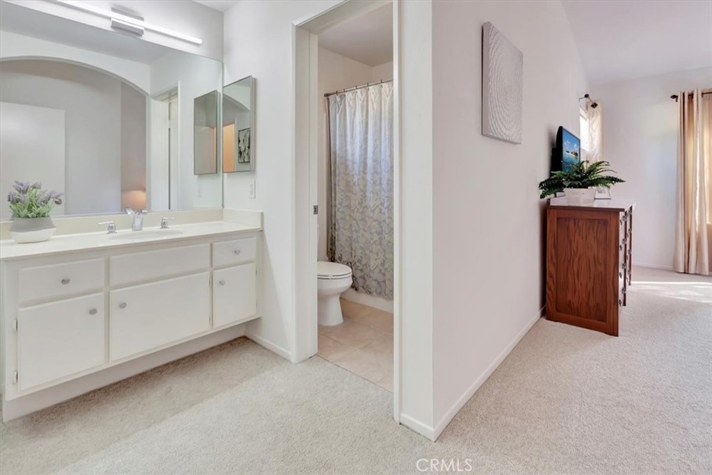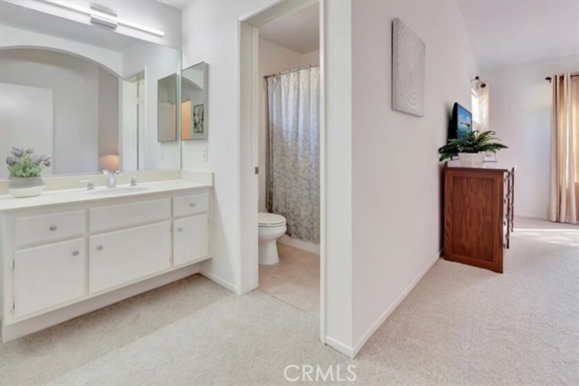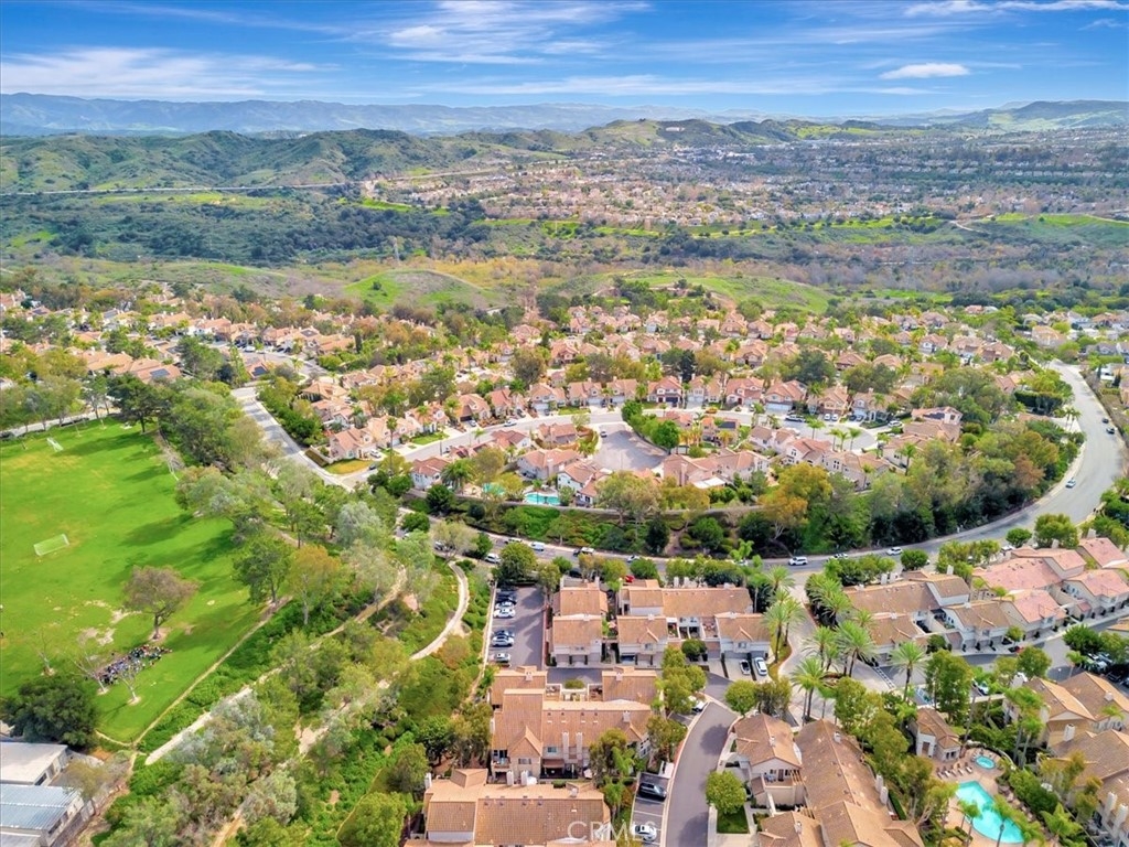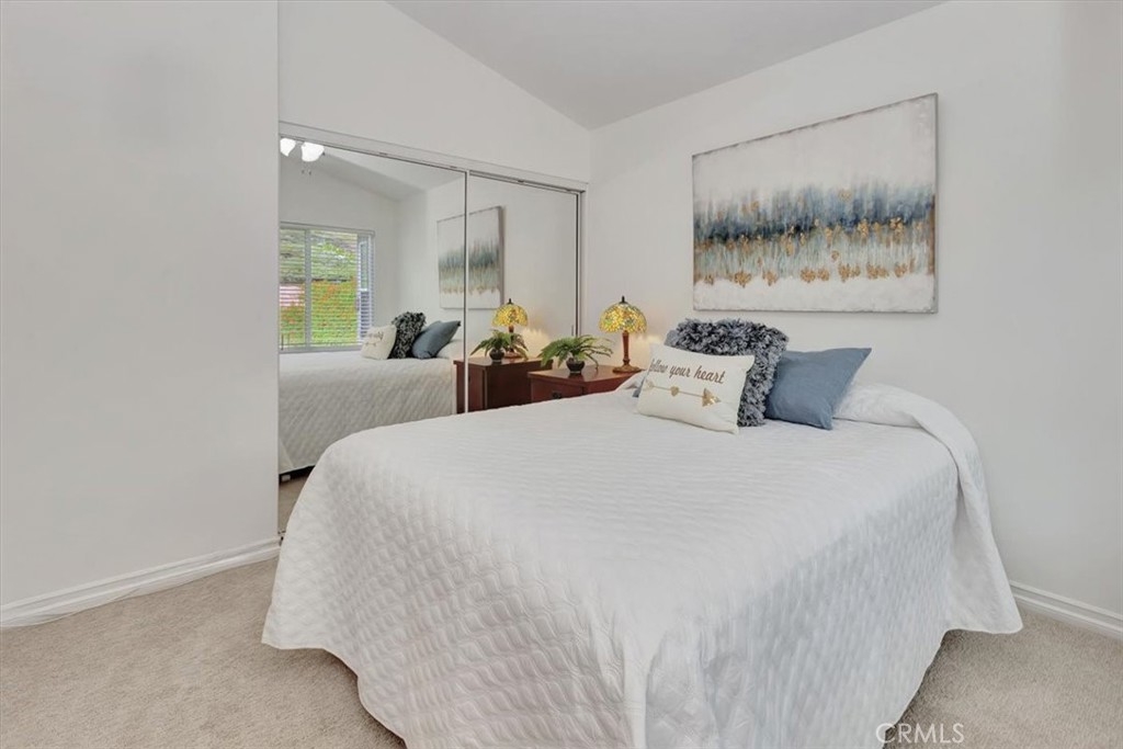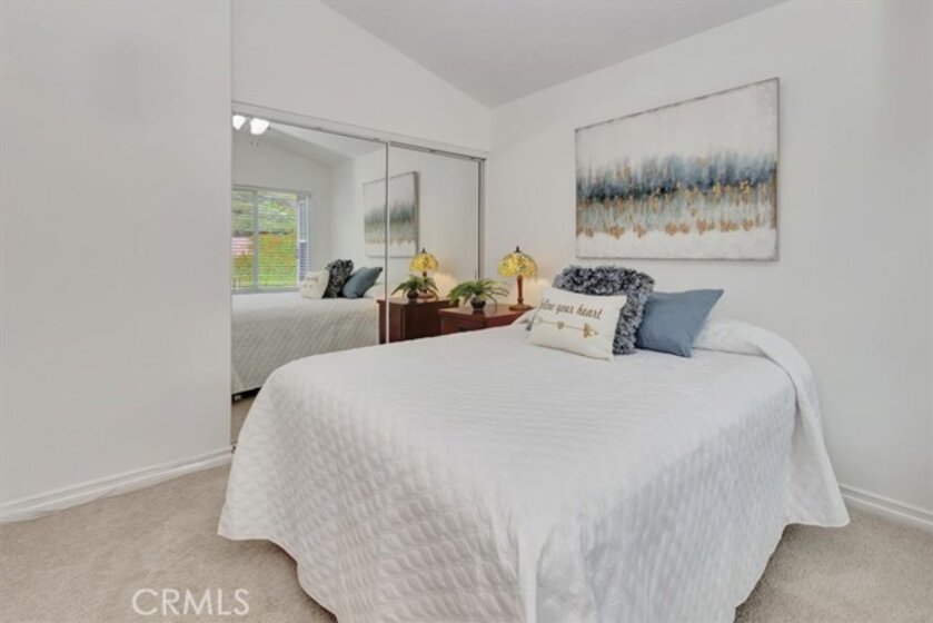 A light-filled, private end-unit where everyday comfort meets the Southern California lifestyle. Welcome home to this well maintained, two-story end-unit condo in the highly desirable Ashton community, where comfort, privacy, and everyday convenience come together beautifully. This 2-bedroom, 2.5-bath home features an open-concept layout with abundant natural light and thoughtful upgrades throughout. The inviting kitchen offers white cabinetry, granite countertops, stone tile backsplash, stainless steel appliances, generous storage, and space for a breakfast table—perfect for casual mornings or easy entertaining. The spacious living room and separate dining area feature plantation shutters, while a cozy gas fireplace and sliding door lead to a private backyard patio backing to the association greenbelt, ideal for relaxing, outdoor dining, and enjoying Southern California’s indoor-outdoor lifestyle. A dramatic stairwell with a soaring two-story ceiling and skylight leads upstairs to a spacious primary suite with vaulted ceilings and a walk-in closet. The second bedroom, also with vaulted ceilings, enjoys its own private ensuite bath, wall-length mirrored closet, and a sense of separation created by a long catwalk overlooking the living space below with ample linen storage. Fresh white interior paint and new plush carpeting complete the home. Additional highlights include a convenient main-level half bath, full-size laundry room, and an attached garage with roll-up door and automatic opener. This private end unit sits in a premium location backing to greenbelt and adjacent to ample guest parking. Residents enjoy access to the community pool, spa, and nearby walking trails. Ideally located close to top-rated schools, including Bathgate Elementary within walking distance, as well as shopping, dining, parks, the Wilderness Area Trailhead for hiking and biking, Arroyo Trabuco Golf Course, La Paws Dog Park, and Lake Mission Viejo. Easy access to the 5 Freeway, 241 and 73 toll roads, Irvine Spectrum, Dana Point Harbor, and multiple beaches. Membership to private Lake Mission Viejo is included, offering swimming, boating, fishing, summer concerts, and picnicking—creating endless opportunities to enjoy life with family and friends. Low Tax Rate & No Mello-Roos! iGuide Measured floor plan reflects 1344 sq. ft, Inside Tract builder records reflects 1281 sq. ft., & assessor's records reflects 1216 sq. ft. Buyer to verify and determine the actual sq. footage.