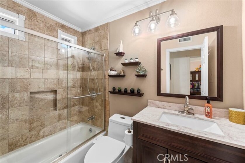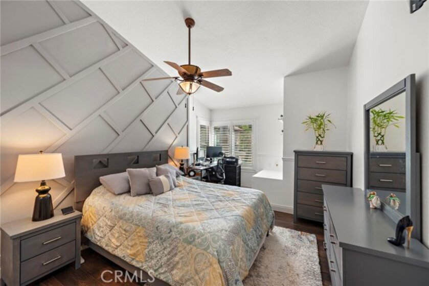 Discover this stunning, upgraded carriage unit in the sought-after Ashton community of Califia, Mission Viejo! This 2-bedroom, 2-bath beauty boasts vaulted ceilings, a spacious layout, and impeccable design throughout. You'll love the modern touches, from the sleek new laminate flooring and stylish shutters on dual-pane windows to the remodeled bathrooms and Quartz kitchen countertops. The master bath is a showstopper, and the custom wood and steel staircase adds a unique flair. Cozy up by the newly renovated fireplace in the living room, which opens to a spacious private balcony with turf—perfect for relaxation or entertaining. With direct access to a 1-car garage, a sparkling community pool and spa, and exclusive access to Lake Mission Viejo's amenities, this home has it all. Walking distance to Bathgate Elementary! This gem won't last long!