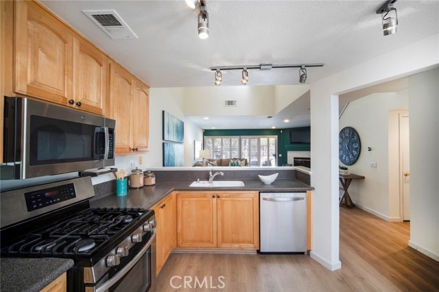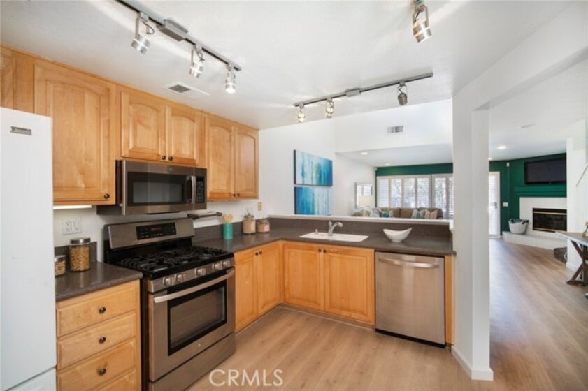 Welcome to your dream home in the heart of Mission Viejo! This beautifully upgraded 2-bedroom, 2.5-bath condo offers the perfect blend of comfort and style. Step inside to find an open-concept living space with abundant natural light, gleaming hardwood floors, and a cozy fireplace—perfect for relaxing or entertaining guests. The gourmet kitchen boasts stainless steel appliances, granite countertops, and ample cabinetry, making meal prep a delight. Upstairs, the spacious master suite features a soaking tub. The second bedroom also includes its own private bathroom, with shower, ideal for family or guests. Additional highlights include a convenient half bath on the main floor, a private patio for outdoor dining or relaxation, and an attached garage. Residents enjoy access to the community pool, spa, and nearby walking trails. Located in a desirable neighborhood, close to top-rated schools, shopping, dining, and the beautiful Lake Mission Viejo, this home offers the best of Southern California living.
