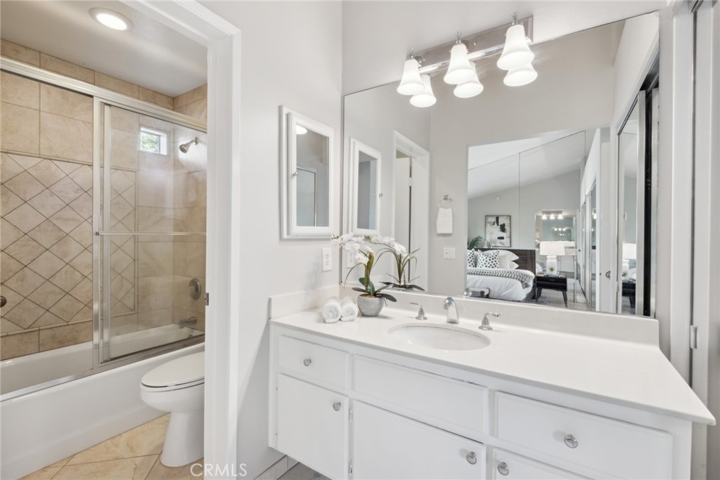 Welcome to 26491 Verdugo, a stunning dual primary suite condo in the sought-after Ashton community of Mission Viejo! This former model home is a true standout, boasting a perfect blend of modern upgrades and timeless elegance. Step inside to discover soaring ceilings and skylights that bathe the home in natural light, creating a bright and inviting atmosphere. The spacious living area features beautiful travertine-style porcelain tile flooring throughout the main level, adding both style and durability. The kitchen is a chef’s dream, showcasing granite countertops, sleek newer cabinets with a convenient pantry, and stainless steel appliances. Enjoy casual meals in the cozy breakfast nook or host guests effortlessly in the open and airy layout. Each of the dual master suites offers its own private bathroom, making this home ideal for comfortable living or hosting overnight guests. The private fenced rear patio is perfect for relaxing or entertaining, while the direct access to the oversized one-car garage with built-in storage ensures convenience and functionality. With its premium location near ample guest parking and a prime spot in the heart of Mission Viejo, this home offers the best of community living. Don’t miss the chance to make this light-filled, turn-key beauty your new home!