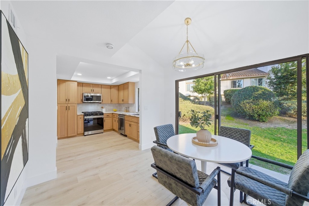 Welcome to 26542 Azuer, an exquisite sanctuary where modern luxury meets unparalleled sophistication and tranquility. A complete, top-to-bottom remodel has transformed this residence into a pristine, move-in-ready masterpiece featuring light and bright designer finishes, updated everything and a clean and bright contemporary aesthetic throughout. Nestled in a quiet interior location, within the highly sought after La Mancha community, this home offers a peaceful escape and provides for turnkey piece of mind while being situated in an well-established locale. The open-concept interior, highlighted by vaulted ceilings and expansive windows which allow for an abundance of natural light, effortlessly flows out to the rear of the home, where nature beacons. Step outside to a private patio that backs directly onto lush, sprawling greenspace, providing a serene backdrop and a true sense of seclusion. Every inch of this home has been reimagined, from the entertainer’s chef’s kitchen with premium appliances to the spa-inspired bathrooms and all new lighting, paint and flooring. A convenient inside laundry room and an attached 2 car garage complete this exceptional residence. Located in a premier Mission Viejo neighborhood, with access to elite shopping, dining, and recreation not far, 26542 Azuer isn't just a home, it’s a refreshing escape situated in an enviable setting. Welcome home.