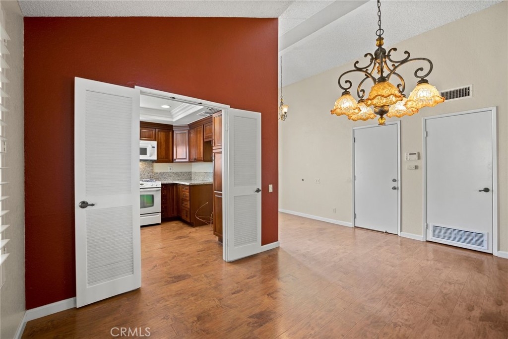 Beautiful 2 bedroom, 2 bathroom, single story home with a private view balcony in the community of La Mancha in Mission Viejo! Enjoy a formal entry to the breakfast nook and gourmet kitchen. The kitchen features granite countertops, white appliances, and elegant wood cabinetry. A few steps down lead to the family room with a brick fireplace and vaulted ceilings. The primary bedroom features a walk-in closet and a lovely updated walk-in shower. Sliding doors open to the balcony with views of the community trees and walking paths. Additional property highlights include the 2 car attached garage. Community amenities include the swimming pool, spa, and walking paths. Convenient to area schools, shopping plazas, parks, and major freeways!