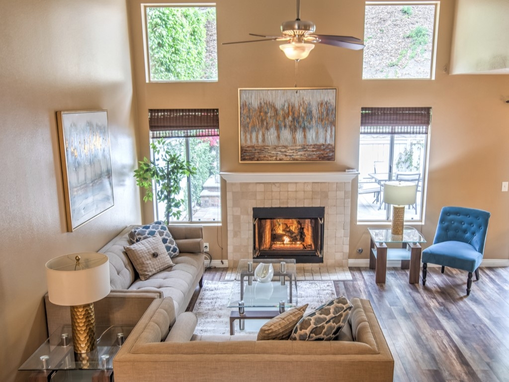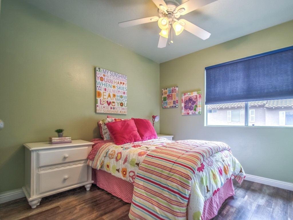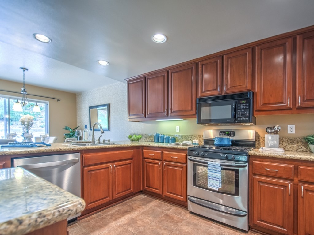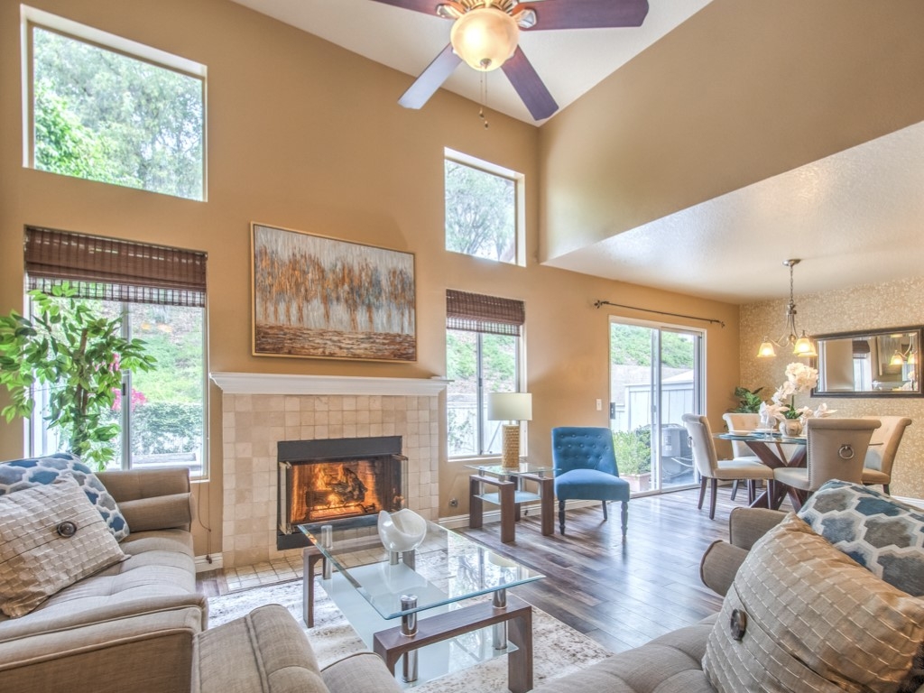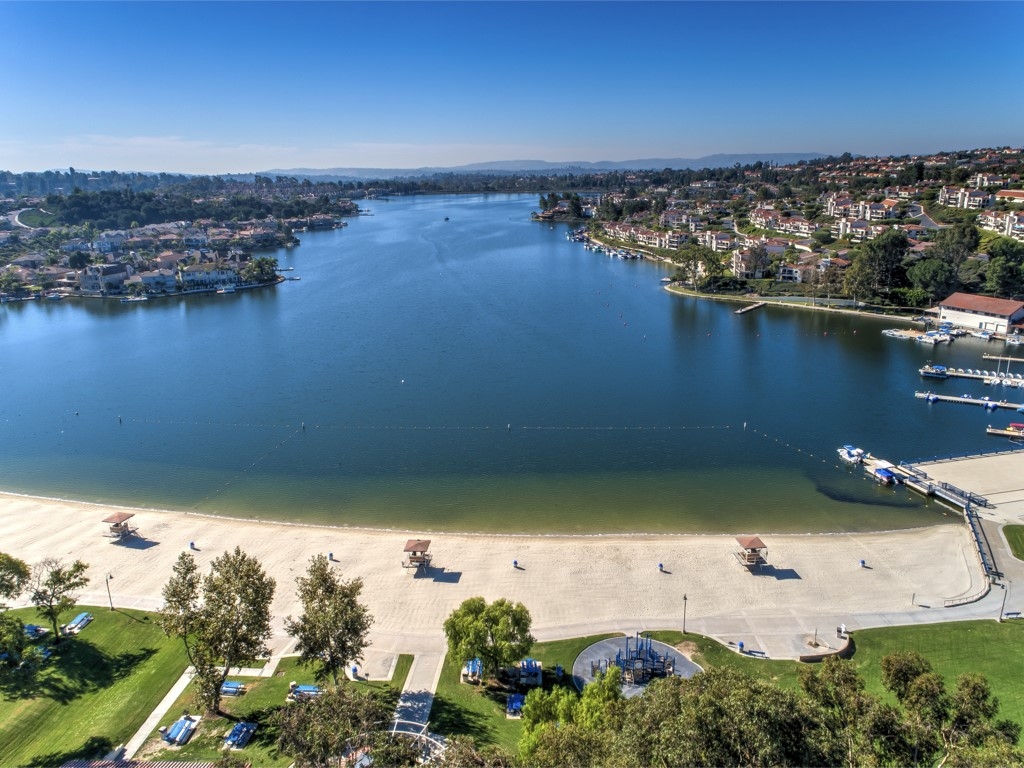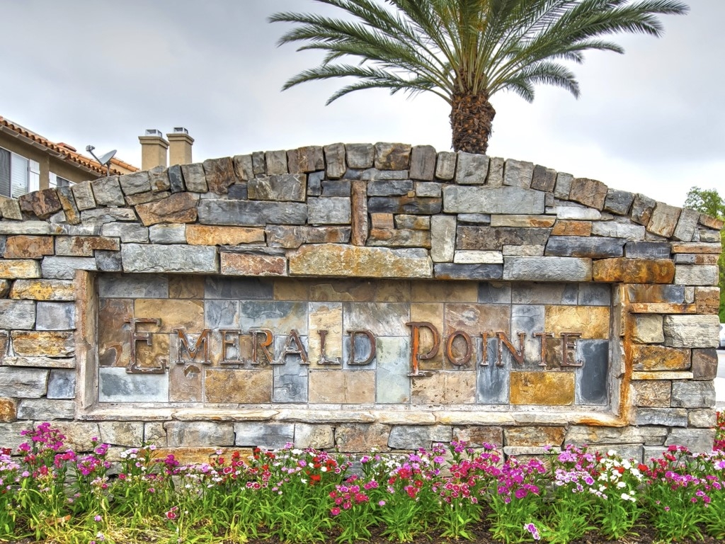 Largest model in the tract and nicely upgraded. This 3 bedroom 2.5 bath townhome style home has one of the largest lots it the neighborhood with no-one behind you. The open floorplan features cathedral ceilings creating lots of natural light. The kitchen has been upgraded with a rich finish on custom cabinets, granite countertops and a 4 start breakfast bar everyone loves. The entire home has upgraded wood grain and easy care laminate flooring and designer paint. The powder room has been enhanced with an upgraded vanity and mirror. The master bedroom has high ceilings a ceiling fan to keep you cool and a nice view of the trees and slope. There are 2 closets of which one is a walk-in and a dual sink vanity in the master bath. Lighting and fixtures have been updated throughout. Located in the back of the complex near the end of the street making this a low traffic area. Private location with large backyard backing to a hillside mailing this a quiet and peaceful place to be. Two association heated pools and spas. great area for hiking and biking. This home has Lake Mission Viejo privileges including fishing, boating, beach, swimming, BBQ picnic areas, live music throughout the summer months and an amazing fireworks display on July 4th. This is a wonderful opportunity to live and thrive in the highly sought after community of Emerald Pointe in beautiful Mission Viejo!!