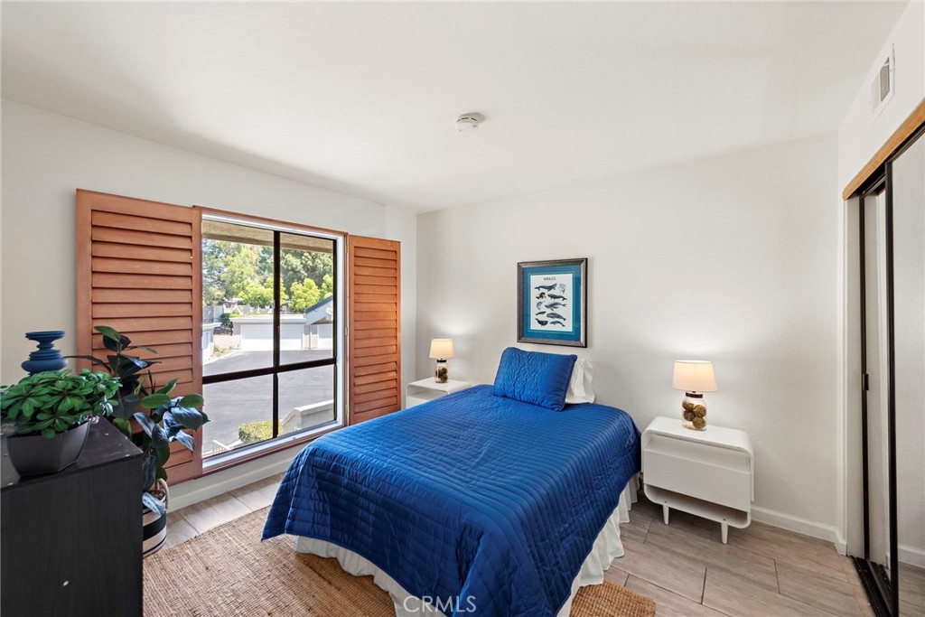 TIRED OF HIGH RATES HOLDING YOU BACK? Seller is offering a 1-year temporary interest rate buydown, permanent rate buy down or closing cost credit—your choice, your savings! Get into your dream home with lower monthly payments from day 1. Tucked away in the exclusive, gated community of Cypress Point, this beautifully positioned 2-bedroom, 2-bathroom residence offers privacy, space, and serene views. With no neighbors above or on either side, this upper-level corner unit offers a unique sense of seclusion and quiet. Spanning 1,439 square feet, the open floor plan welcomes you with a generous foyer leading into a bright and airy living space. Expansive dual sliding glass doors frame sweeping views of the golf course, with a peek-a-boo glimpse of Lake Mission Viejo just to the right. Step out onto the oversized rear deck—the perfect spot for morning coffee or relaxing evenings surrounded by greenery. The updated kitchen is thoughtfully designed with granite countertops, a tile backsplash, stainless steel appliances, and ample cabinet space. A cozy breakfast nook sits beside a third sliding glass door that opens to a fully enclosed side patio—ideal for grilling, dining, or simply enjoying the surrounding vistas. Just off the kitchen, a dedicated laundry closet with side-by-side machines and built-in storage adds everyday luxury and convenience. The adjoining dining area flows seamlessly into the living room, complete with a charming traditional fireplace for cozy evenings. On the opposite wing of the home, the spacious primary suite boasts southwest-facing windows, a wall of mirrored closets, and a large dual-sink vanity. A separate room houses the shower, toilet, and additional storage. Additional highlights include a detached two-car garage, central A/C, plantation shutters and rolling window shades. As a resident of Cypress Point, you’ll enjoy access to the private HOA pool, spa, and clubhouse. This home also includes membership to Lake Mission Viejo—offering year-round enjoyment with swimming, concerts, events, boat rentals, and more.