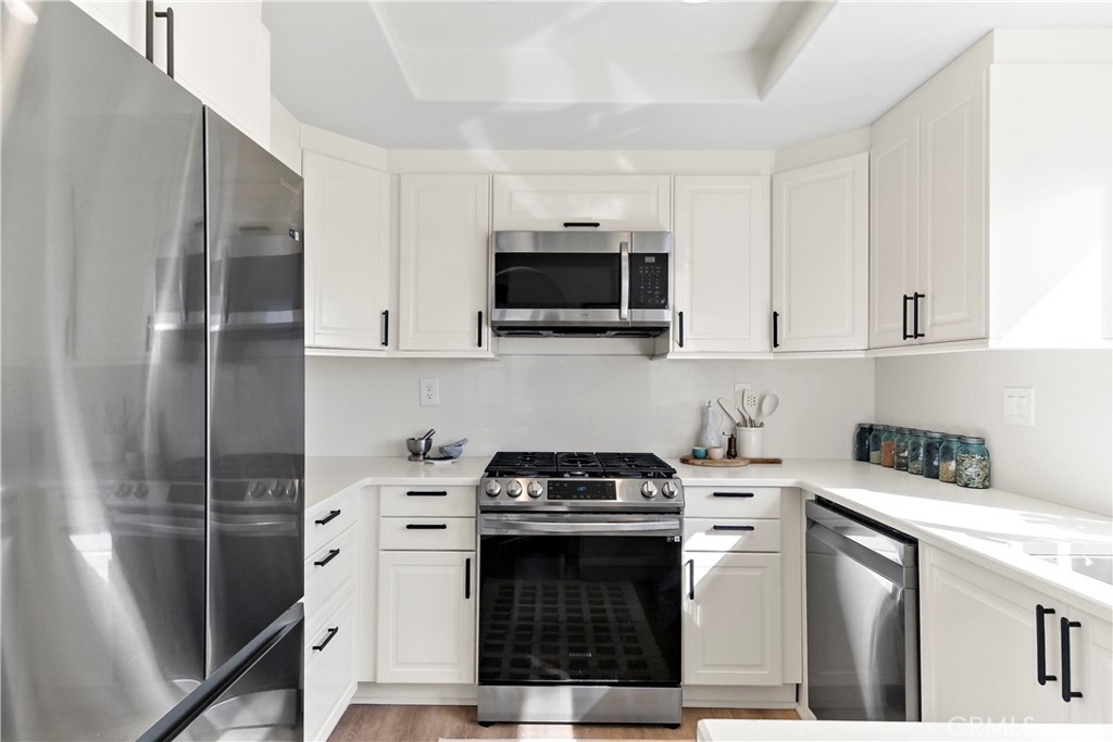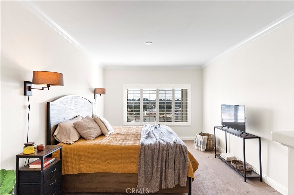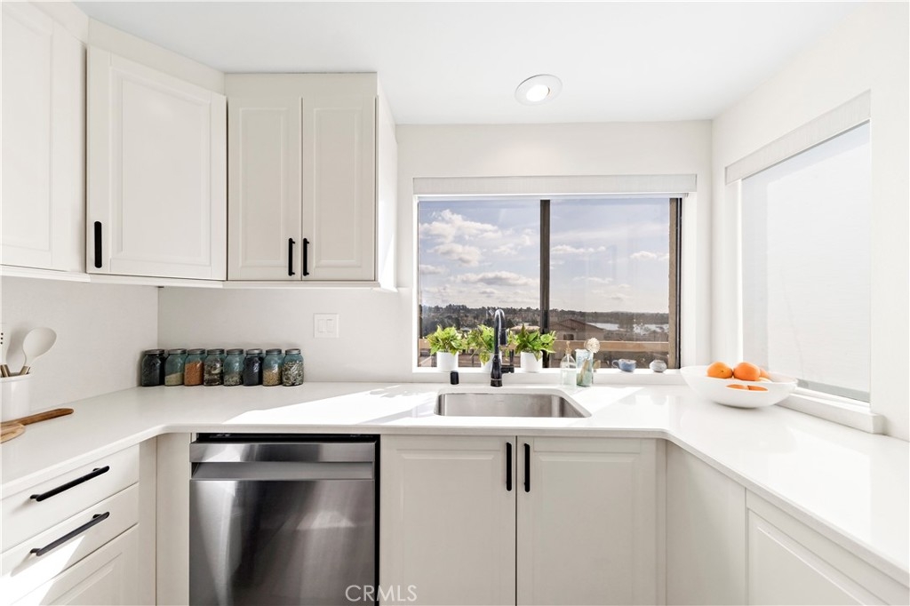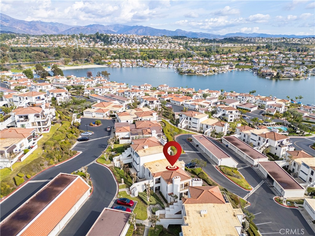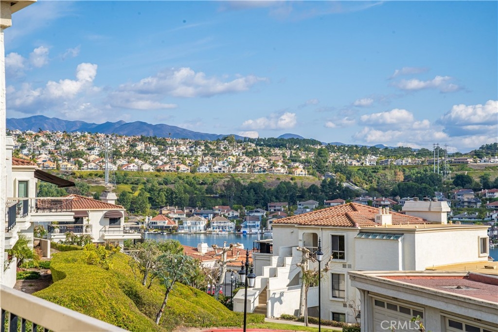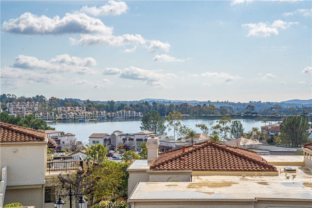 STUNNING LAKE MISSION VIEJO CONDO WITH PANORAMIC VIEWS.... This exceptional 2-bedroom, 2-bathroom, 2-car detached garage Condo offers views of Lake Mission Viejo all the way to Alicia, East Beach, the Oak Preserve, Hills and City Lights. This residence, situated at street level, with 5 stair steps leading to your door, and no one living above, you can enjoy a peaceful and private living experience. This beautifully maintained home angles to the southeast, creating excellent sun orientation, ensuring a bright and inviting atmosphere throughout the day. Featuring luxury vinyl flooring, plush carpeting and 9-foot textured ceilings in the main living areas. Wide blade plantation shutters, crown molding, and oversized baseboards, all add to the ambiance. The inviting, step down living room has a crackling fireplace with brick facing, brick hearth and wood mantel. Recessed can lights and a sound system with multiple speakers to increase your listening pleasure. Sliding doors from the Living Room and Dining Room grant access to a spacious, rear facing balcony; perfect for entertaining guests, taking in views or simply relaxing. The recently updated, gourmet kitchen has quartz counters and high backsplash, a stainless appliance suite including a 5-burner stove/oven, dishwasher, microwave and sink, new cabinet doors and drawers with soft close feature. Talk about convenient... there are two double sized pot drawers, a pantry with pull out shelving and easy access to under counter corner storage. Who wouldn't be happy with all that? The Primary Suite has a triple mirrored closet, vanity with quartz counter and backsplash, double Kohler sinks and updated double mirrors with storage. Behind the privacy door, you will find a walk-in shower with a frameless glass enclosure, tile walls and floor. Bronze faucets, handles and knobs bring the entire experience together nicely. You’ll have an HVAC system that’s just 3 years old, the closest possible garage, plenty of on street guest parking... the list goes on. The Mallorca Community has its own Private Beach with Cabana and picnic area, 72 in-the-lake boat docks, dry docking for Paddle Boards, a loading dock, 2 pools/spas and a 24/7 live gate guard. Membership to Lake Mission Viejo is all part of the package with Boating, Swimming, Summer Concerts, Summer Movies and Fireworks display. Mission Viejo itself is a draw, with Shopping at the Mall, plenty of parks, athletic fields, Award Winning Schools, and Medical Facilities.