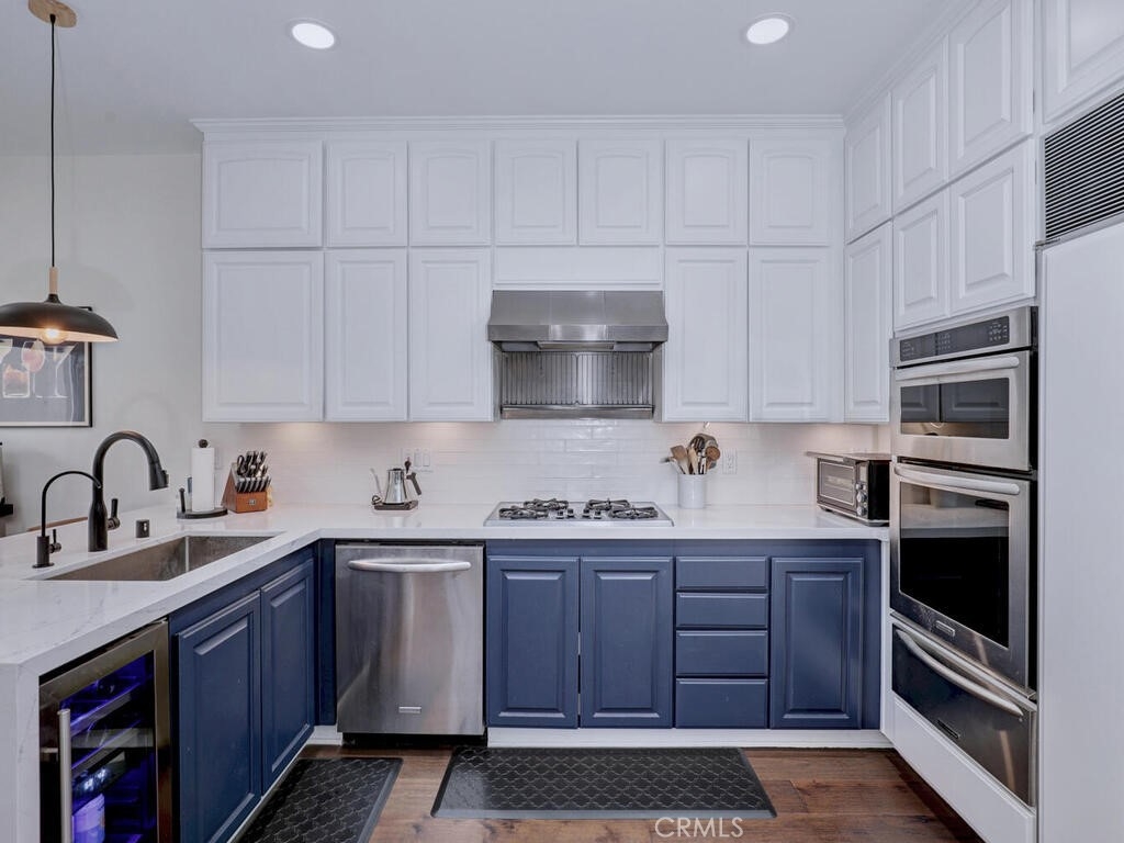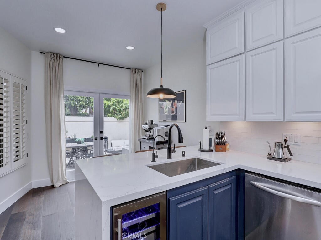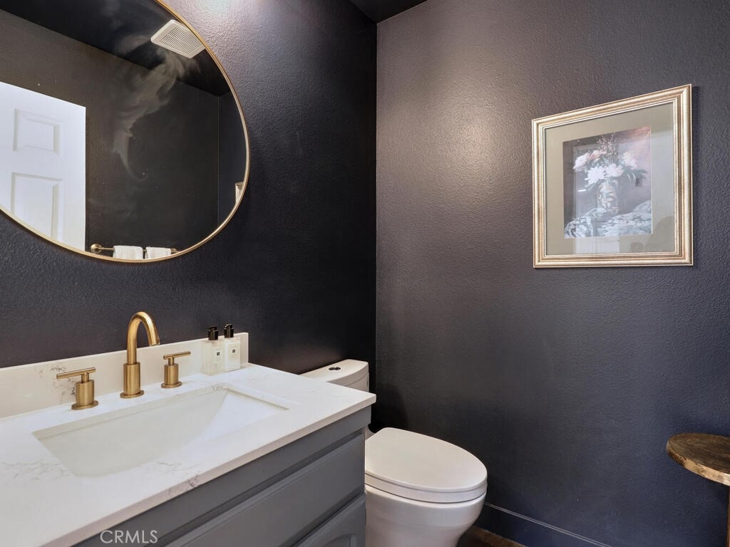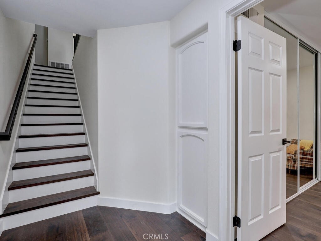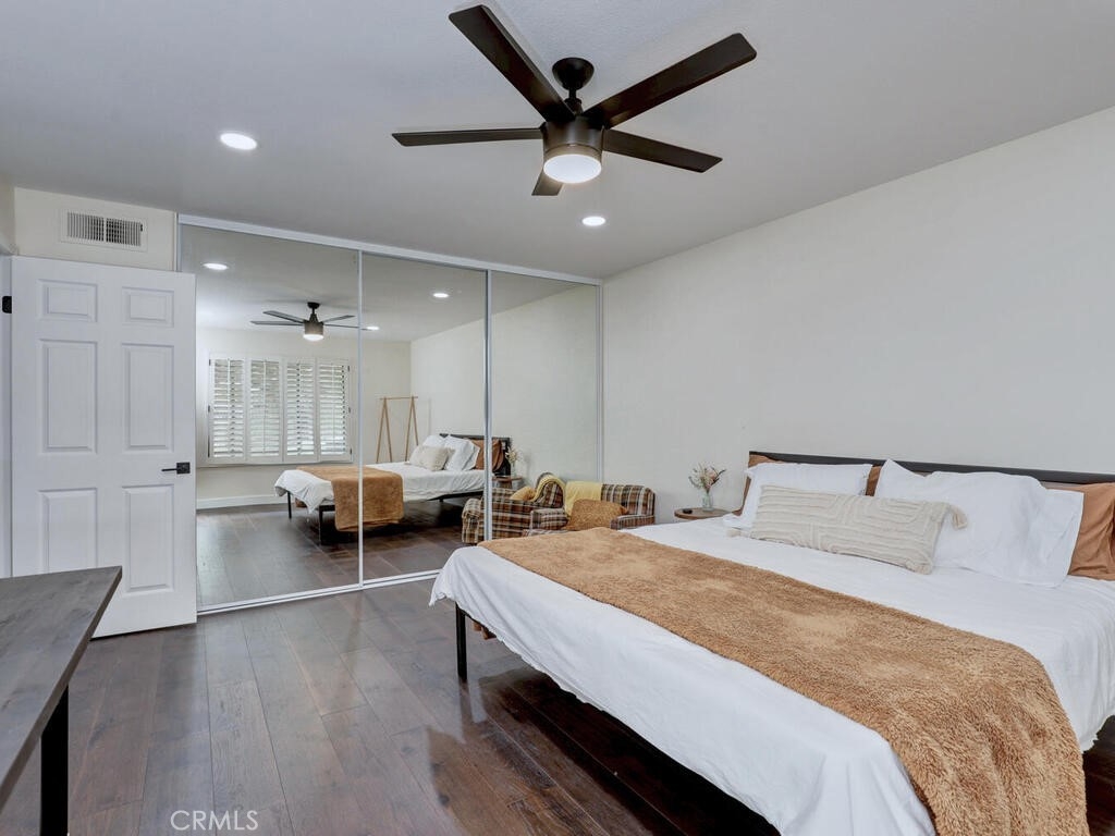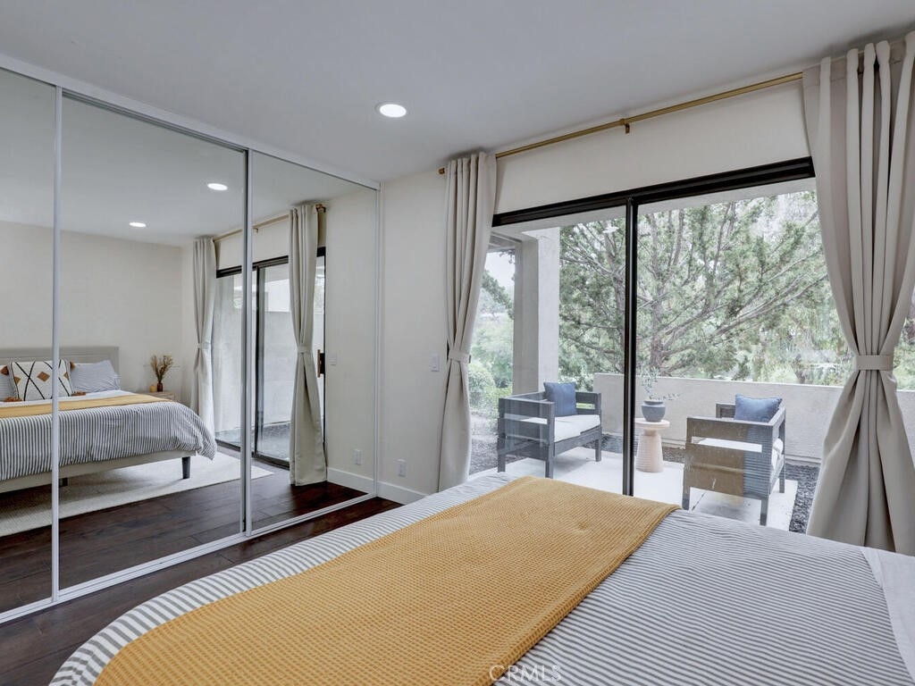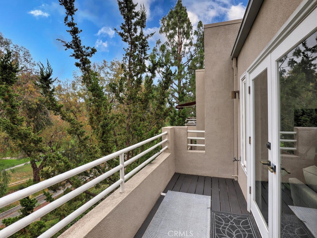 Magnificent Townhome located in the gated community of Cypress Point. This home welcomes you into a private enclosed entertainer’s patio area that leads to the front entry. Once inside the dramatic floorplan opens up with high ceilings, newly installed wood flooring throughout, with complementing tile flooring in both full baths and laundry, and beatifically accented walls. The kitchen offers updated appliances, built-in refrigerator, new waterfall quartz countertops with breakfast bar and eating nook that opens through glass French doors into the courtyard for perfect indoor/outdoor living. Large living and dining space has a central linear gas fireplace and a balcony to enjoy the view of Oso Creek Golf Course, trees and greenery. The large Primary bed and bath is located on this main floor with large separate tub and shower and a walk in closet. Beautiful high ceilings with new windows allow a gorgeous flow of natural light. Newly renovated powder room is a stand-out feature of the main floor. Downstairs has two large secondary bedrooms and full bath with a variety of ways to use the area - office, guest room, exercise area, etc. There is a private patio that overlooks the golf course adding to the multiple areas to enjoy the outdoors. The designated laundry room is located upstairs off the entrance to the garage. Garage is 2 car with plenty of storage space. There is an added electrical plug for a car charging system. The 3 residences on Spyglass have 4 additional parking spaces right in front to allow for more than adequate parking. Top of the line HVAC and a Rinnai tankless water heater installed only 3 years ago and dimmable recessed lighting through the whole house. The Cypress Point location is perfect with close distance to Lake Mission Viejo, popular walking trails, the community has resort style pool and spa connected with a clubhouse and room available for large functions and community events. If you like to golf the Oso Creek Golf course is at your fingertips with golf and a new restaurant with patio dining. Enjoy all the amenities of living in Mission Viejo with summer here there are concerts, fireworks, night markets, farmer's market and more! Come visit and fall in love with this home!
