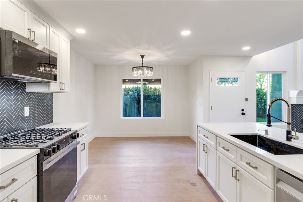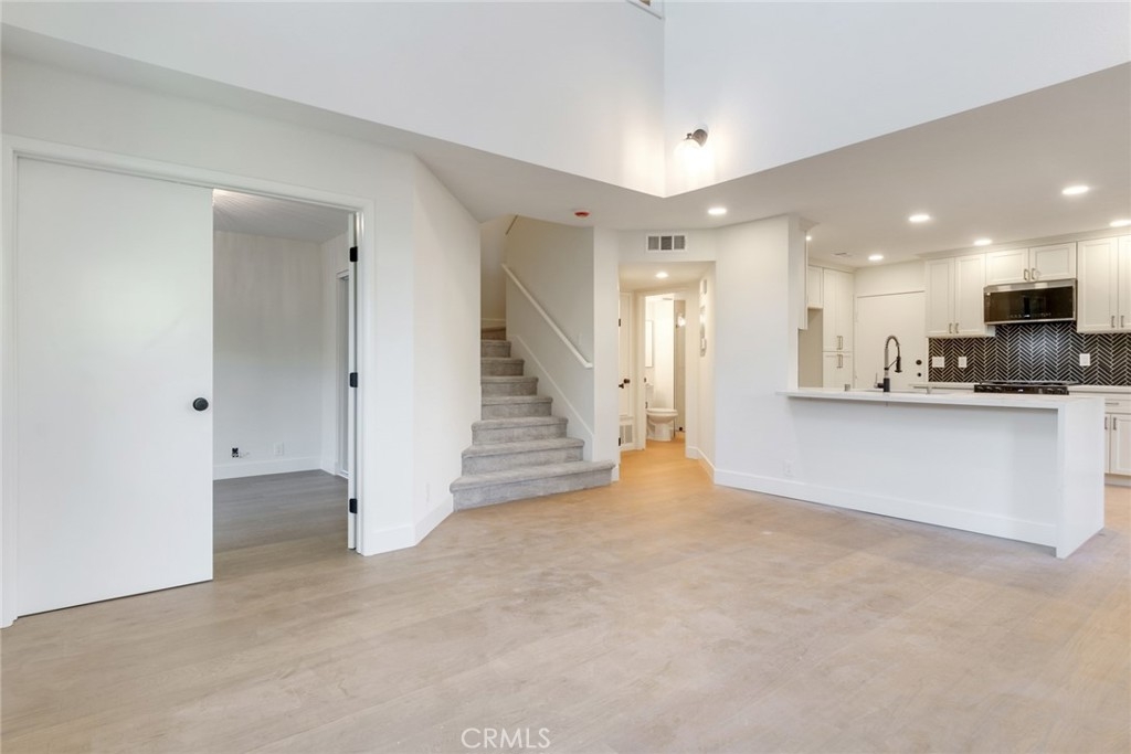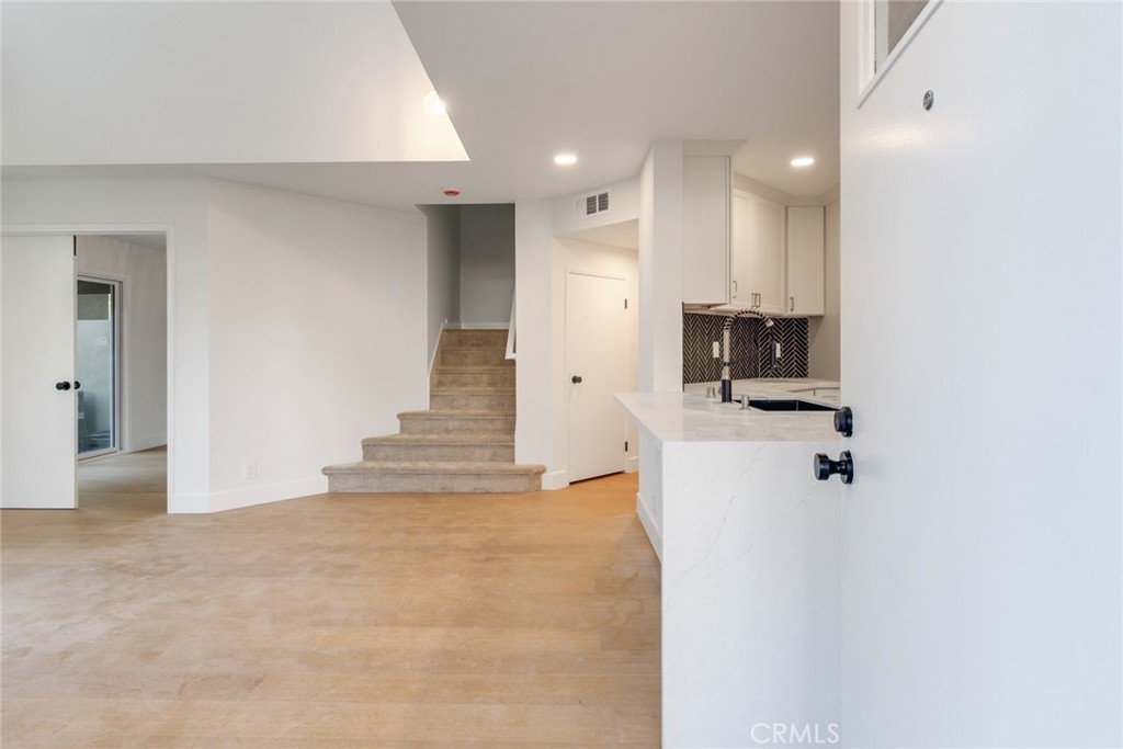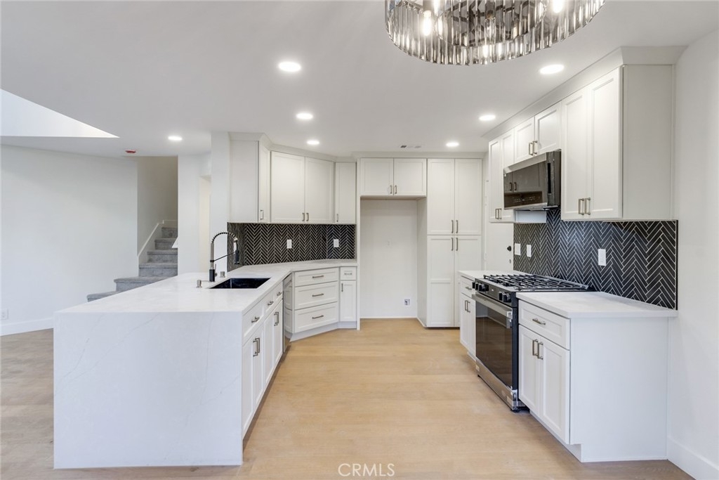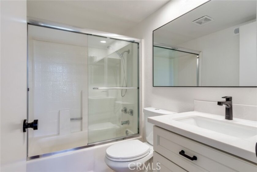 Absolutely stunning showstopper of a condo that lives like a townhouse. This rare end-unit offers exceptional privacy with no one above or below, abundant natural light, and a private gated yard featuring a patio, grass area, and mature landscaping. Ideally located next to one of two recently refinished pools in the desirable Rainbow Ridge community, this home also includes a one-car garage with direct access. Inside, you’ll find a beautifully upgraded and refinished three-bedroom, three-bathroom floor plan, including a convenient first-level bedroom and bathroom with a walk-in tiled shower. The updated kitchen showcases J&K Dove cabinetry, quartz countertops, a decorative backsplash, chic fixtures, and upgraded appliances. Additional improvements include all-new Milgard windows throughout, a central HVAC system updated in recent years, an updated electrical panel, and new lighting and plumbing fixtures. The spacious primary suite impresses with soaring ceilings, a large closet, a remodeled vanity, and an expansive tiled walk-in shower. The upstairs secondary bedroom is privately situated and overlooks the pool. Community amenities also include a playground with tot lot and a basketball court, making this home the perfect blend of comfort, style, and convenience. Don't forget that the owner of this property gains access to Lake Mission Viejo and all its amenities. Info deemed reliable, buyer to verify.
