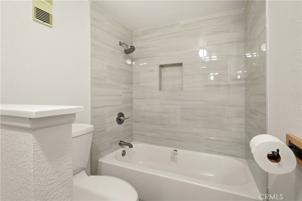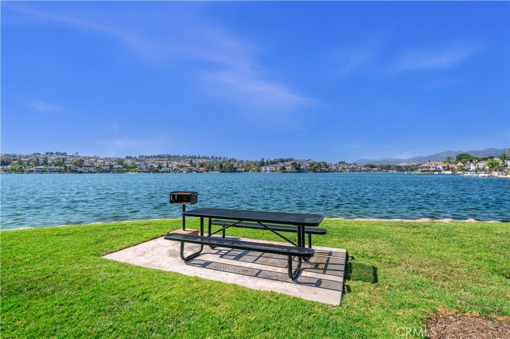 BEAUTIFUL 2-STORY TOWNHOUSE, 2 BEDROOM PLUS AN OFFICE, NEWLY REMODELED THIS YEAR, LIVING SPACE ALL ON ONE LEVEL, NO ONE ABOVE OR BELOW, RARE 2-CAR DIRECT ACCESS GARAGE WITH ADDITIONAL STORAGE SPACE, AND ONLY ONE BUILDING AWAY FROM MISSION VIEJO LAKE WITH SWIMMING BEACH AND BOAT DOCK! Open floor plan with high cathedral ceilings, recessed lighting, large windows, and a long, wide outdoor deck with sliding glass doors to living room and primary bedroom. Home is newly painted white with warm green undertones and has luxurious wide Laminate plank waterproof flooring throughout. Living room with fireplace and new white oak cabinets and shelves is open to dining room with recessed lighting and has open doorway to a separate office with windows on two sides that can be used as a guest bedroom. This is the only model that has a separate office! Beautifully and newly remodeled kitchen with breakfast bar, recessed lighting, quartz countertops, white oak cabinets and shelves, farmhouse sink, stainless steel dishwasher and gas range with vented exhaust hood, is open to kitchen dining area that has a laundry closet with more white oak cabinets, and a sliding glass door to atrium. Off the living room is the spacious primary bedroom with walk-in closet and newly remodeled primary bathroom with quartz countertop and white-oak cabinets on the vanity, and bathtub with upscale tiled shower. At the end of the hall are ceiling-to-floor new white oak cabinets, a second bedroom with recessed lighting and sliding glass door to the atrium, and hall bathroom also newly remodeled with quartz countertop and white-oak cabinets on the vanity, and bathtub with upscale tiled shower. Switches and outlets are new everywhere but garage, all internal doors and doorknobs, faucets and towel racks are new, and window blinds in office and stairs are new. Lots of storage space in the many cabinets and in garage. Resort-style community with pool, outdoor barbeques, seating and picnic tables, and direct lake access for swimming, paddleboarding and more! Located in highly acclaimed Capistrano Unified School District! Conveniently located near shopping, entertainment, and 5 and 241 freeways. Water, trash and exterior maintenance included in HOA dues. A wonderful opportunity!