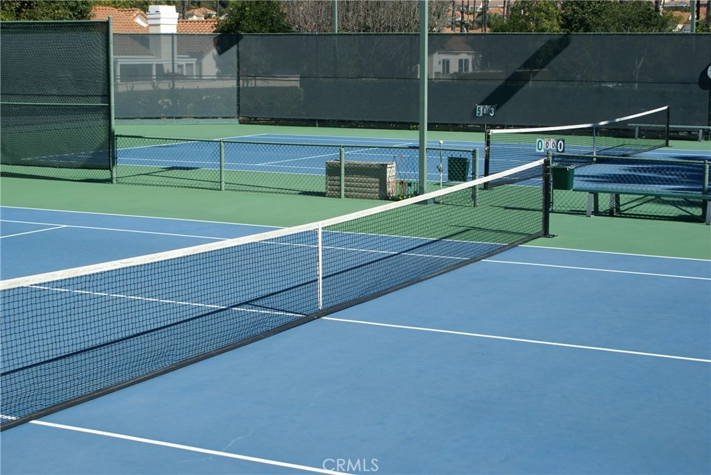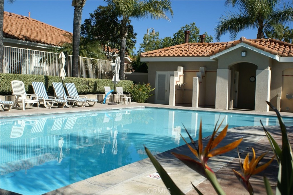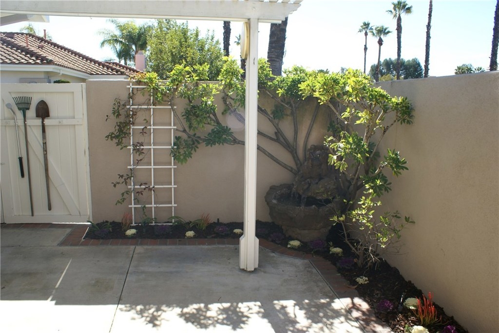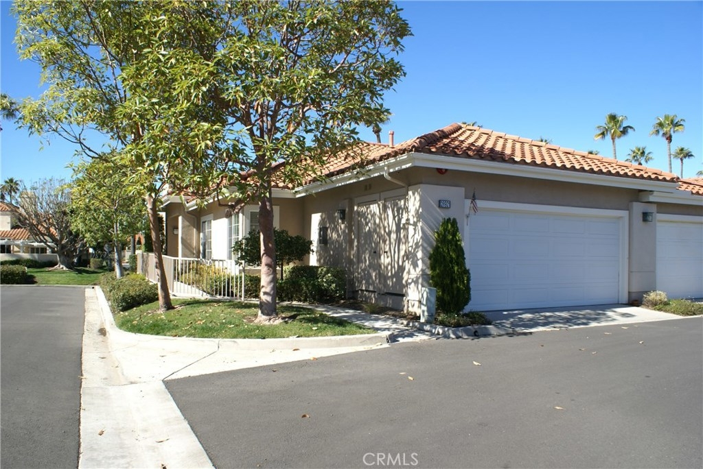 A sought after plan 2, in beautiful Palmia in Mission Viejo, south Orange Counties premier 55 +community. The home is in original but excellent, move in condition with beautiful manufactured "Tobacco" hardwood floors throughout. The patio is freshly landscaped in colorful low-care plants with automatic sprinklers and a bubbling fountain. An end unit, with no neighbor behind, with a very open sunny feeling. The home includes a washer (brand new, never used), dryer, refrigerator plus an extra, full sized, refrigerator in the garage. The living room has a cozy fireplace. The Master bedroom has dual sinks, and mirrored wardrobes and the laundry room has a fold out ironing station including the iron. The roomy 2 car garage has an inside entrance to the laundry room and hence the kitchen, convenient for easy access when returning from shopping. There is a neighborhood pool and spa right around the corner, plus your buyer will have all the amenities offered by the Lake Association. Take the grand kids sailing, trout fishing, 4th of July party, picnicking, sandy beaches and wonderful summer concerts, and Palmia has a fabulous Clubhouse with an 18 hole putting green, tennis and paddle tennis courts, work out center, large swimming pool, perfect for doing laps, spa, pool room, bocce ball, shuffle board, well stocked library filled with mysteries and romance novels plus numerous social events, clubs, and every opportunity to meet new friends and old. New "Pex" plumbing in 2017.