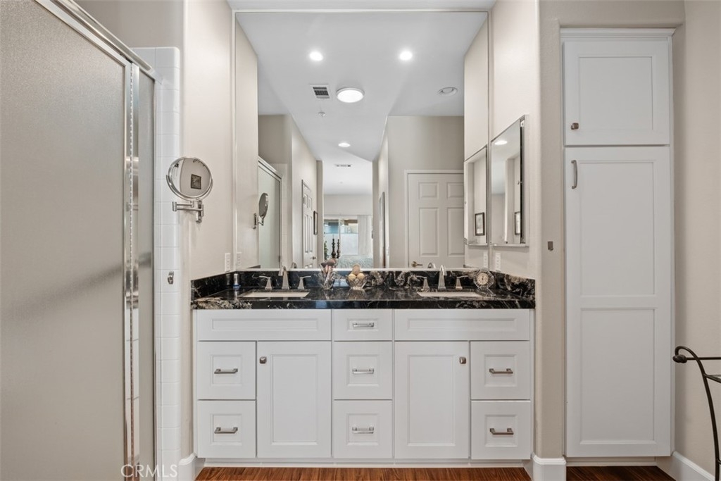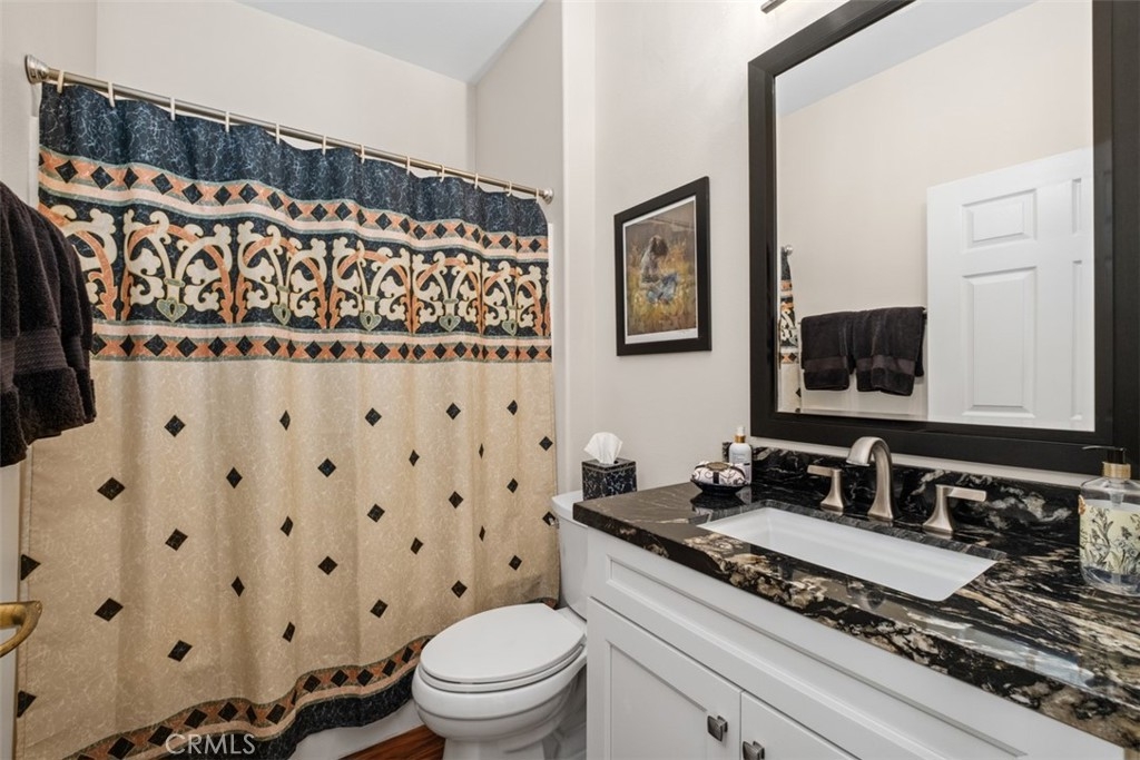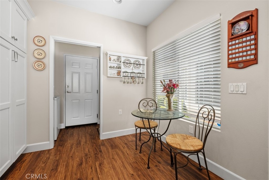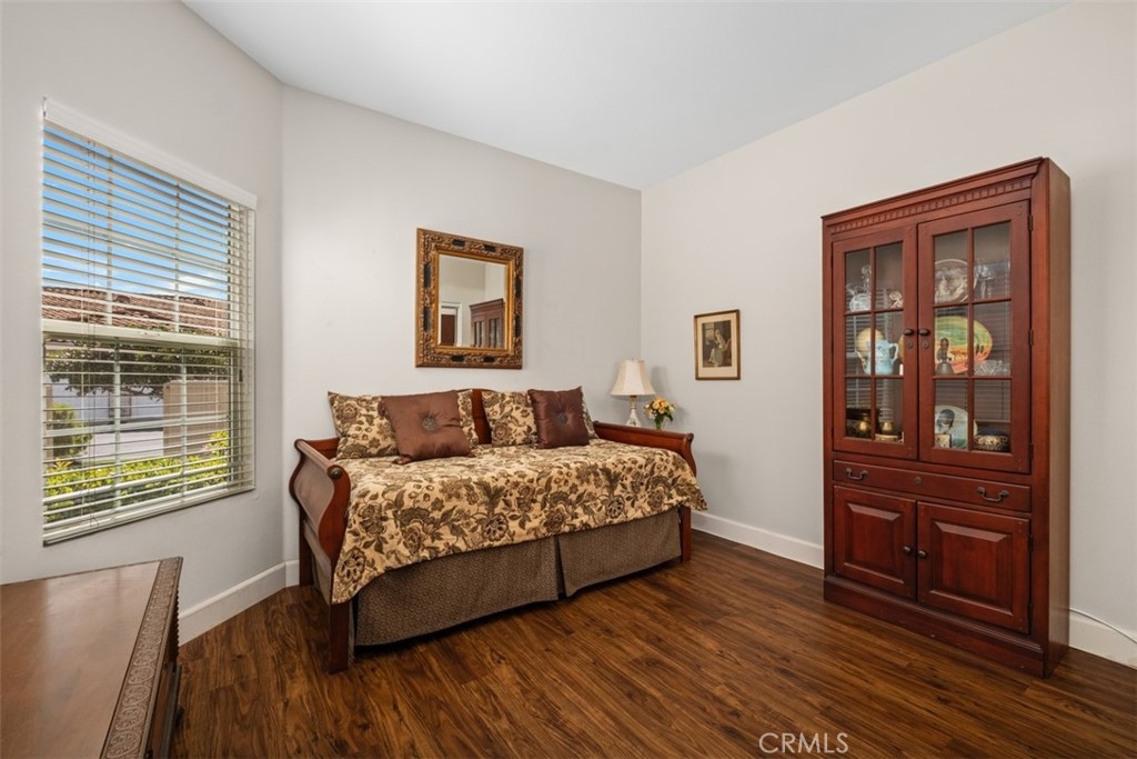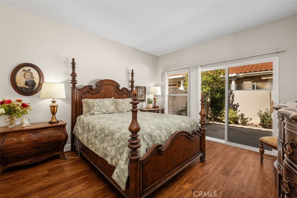 Welcome to resort-style living in the highly sought-after 55+ Palmia senior community. This beautifully maintained 2-bedroom, 2-bath condominium is truly move-in ready and offers comfort, style, and an exceptional active-adult lifestyle. The home features luxury vinyl wood flooring throughout and a totally remodeled kitchen with custom cabinetry, granite countertops, stainless steel appliances, a granite sink, and a charming breakfast nook. From the formal entry, you’ll find a guest bedroom and a remodeled full bathroom. The inviting living room boasts vaulted ceilings, a cozy fireplace, plantation shutters, and direct access to the private back patio, perfectly positioned next to the formal dining area for easy entertaining. The spacious primary suite is located at the rear of the home for added privacy and includes plantation shutters and direct patio access. The remodeled primary bathroom features custom cabinets, with dual sinks and granite counters, a large walk-in shower, a separate water closet, and a generous walk-in closet. Additional highlights include full PEX re-piping and a highly desirable two-car driveway. Residents of Palmia enjoy an unparalleled array of amenities, including an 18-hole putting green, tennis, paddle tennis, pickleball, bocce courts, a fitness center, billiards room, elegant clubhouse, library, card room, numerous clubs, social events, and more. Ownership also includes membership to Lake Mission Viejo, offering boating, sandy beaches, and popular summer concerts. A wonderful opportunity to enjoy vibrant, active living in Mission Viejo’s premier gated communities.