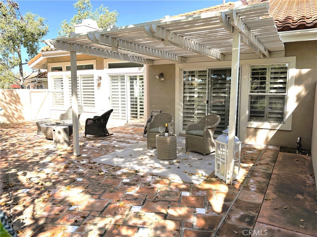 Bring All Offers! Beautiful 3 Bedroom, 2 Bath, Single-level End Unit home with a much sought after Full-sized, 2-car Driveway located in the very desirable 55+ Guard Gated community of Palmia in Mission Viejo. A wall in the third bedroom was removed, opening it to the spacious Kitchen. The door to the room from the hallway, as well as the closet, remains in place. The room could easily be converted back to a private bedroom or continue to be used as a TV room or dining area. This home features plenty of natural light with shutters and blinds throughout. The expansive Eat-in Kitchen features a gas range & convenient Island. The Primary Bedroom includes a ceiling fan and access to the large outdoor space via a sliding glass door. The Primary Bath features dual sinks and a walk-in shower with no step. Other features include a fireplace in Living Room, high ceilings, hard surface/tile flooring and recessed lighting throughout. The separate inside laundry room includes plenty of cabinets and a utility sink. The 2-car garage can be accessed directly from inside the home. The home has been re-piped and has no Mello-Roos. The Association clubhouse and amenities includes 2 pools, spa, putting course, tennis, activities, cable service and more.