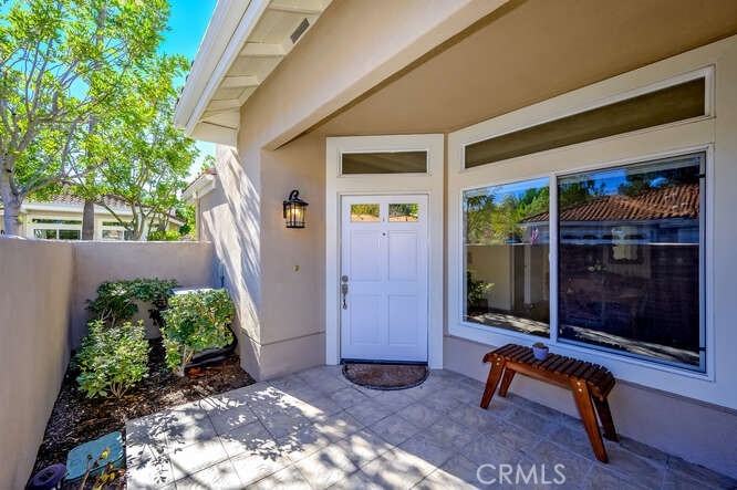 This beautiful single-level home is located within the highly desirable 55+ community of Palmia. Light and bright, this corner end-unit offers a prime location and has been tastefully upgraded throughout. The home features updated flooring and baseboards, recessed lighting, and a stylish updated fireplace that adds warmth and charm to the living space. The kitchen showcases crisp white cabinetry with soft-close doors, updated countertops, and stainless-steel appliances, creating a clean and inviting space for everyday living and entertaining. Both bathrooms have been beautifully updated with new vanities. The spacious primary suite includes two large closets and an en-suite bathroom with dual sinks and shower with glass enclosure. A separate indoor laundry room with sink adds everyday convenience. Enjoy outdoor living on the large private patio, thoughtfully designed with a balanced mix of hardscape and softscape. The two-car garage features and the home has also been fully re-piped for peace of mind. Recessed lighting, soft water, Newer HVAC and Water heater along with remote blinds and ceiling fans are among just a few of the extras. Palmia is a 55+ community like no other, offering resort-style amenities including a clubhouse, swimming pool, jacuzzi, 18-hole putting green, fitness center, pickleball and tennis courts, library, shuffleboard, bocce ball, and more. Homeowners also enjoy membership to Lake Mission Viejo, featuring boating, fishing, beaches, concerts, and picnicking.