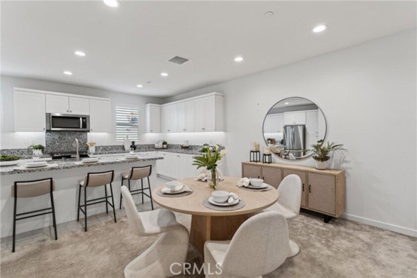 Discover refined, modern comfort in this inviting 4-Bedroom, 3.5-Bathroom tri-level condo, perfectly positioned in a premium location within the Neo neighborhood of Mission Foothills—nestled against a secluded, enclosed hillside offering additional privacy and tranquility. Built in 2022, this contemporary residence blends sophisticated design with practical living. Enter through a spacious front patio with keyless entry into a welcoming foyer that leads to a convenient main-level bedroom and full bath—ideal for guests or a home office. The open-concept second level features a living room that flows effortlessly into the dining area and gourmet kitchen, highlighted by an oversized island, sleek stainless steel appliances, and elegant finishes. Upstairs, the primary suite offers a serene retreat with upgraded carpeting, a generous walk-in closet, and a spa-inspired en-suite bathroom featuring dual vanities and a large walk-in shower. This home allows for effortless living with smart technology throughout - control the thermostat, solar panels, garage, lighting, internet, and tankless water heater all conveniently through your phone. Enjoy resort-style community amenities, including a sweeping pool and spa, outdoor dining and BBQ areas, playgrounds, and a cozy fire pit. With no Mello-Roos fees, this home delivers exceptional value. Ideally located near top-rated schools, local dining, boutique fitness studios, yoga centers, and shopping destinations—with easy access to major toll roads—this home embodies modern luxury living in one of Mission Viejo’s most desirable settings.