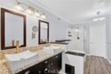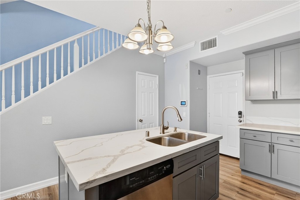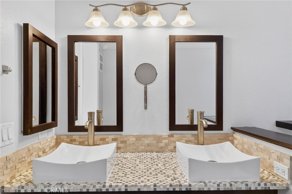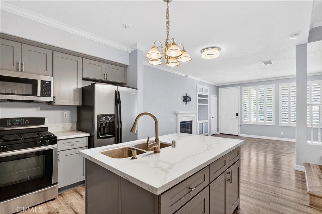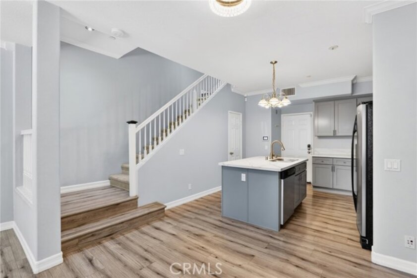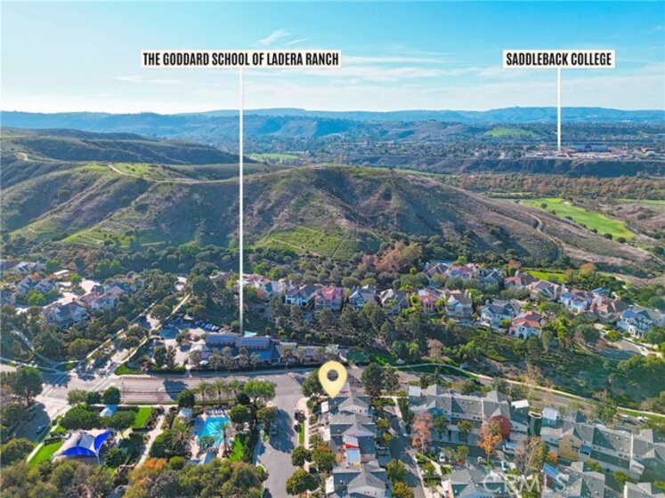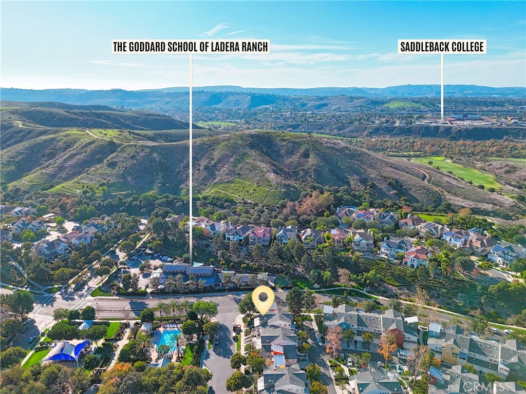 Ladera Ranch living at its finest! Experience refined living in this beautifully upgraded townhouse located in the highly desirable Sutter's Mill community. The inviting main level features an open-concept living and dining area highlighted by a cozy gas fireplace, recessed lighting, and large windows that fill the home with abundant natural light, creating a bright and welcoming atmosphere. The well-appointed kitchen showcases quartz countertops, generous cabinetry, and a functional layout ideal for both casual dining and entertaining. Upstairs, the spacious primary suite offers a private retreat complete with a walk-in closet and access to a private balcony overlooking a tranquil greenbelt and sparkling pool. Two additional bedrooms provide flexibility for guests, a home office, or growing households. A dedicated, full-size laundry room features in-unit washer and dryer, complemented by built-in cabinetry for added storage and organization. Enjoy outdoor living with a private, fenced front patio ideal for relaxing or entertaining. The home also offers direct-access to an attached two-car garage, enhanced by custom built-in garage storage that maximizes space, organization, and functionality, along with a full-length driveway for added convenience. For maximum convenience, residence features ADT security panels and keypad and a newer, top of the line tankless water heater. Residents of this charming community enjoy access to resort-style amenities including a pool, playgrounds, and nearby walking and hiking trails. Ideally situated close to top-rated schools, shopping, dining, hospitals, and easy freeway access, this turnkey home presents an exceptional opportunity to enjoy the best of South Orange County living. Living area, primary and guest bedrooms are virtually staged. Unfurnished photos are included.