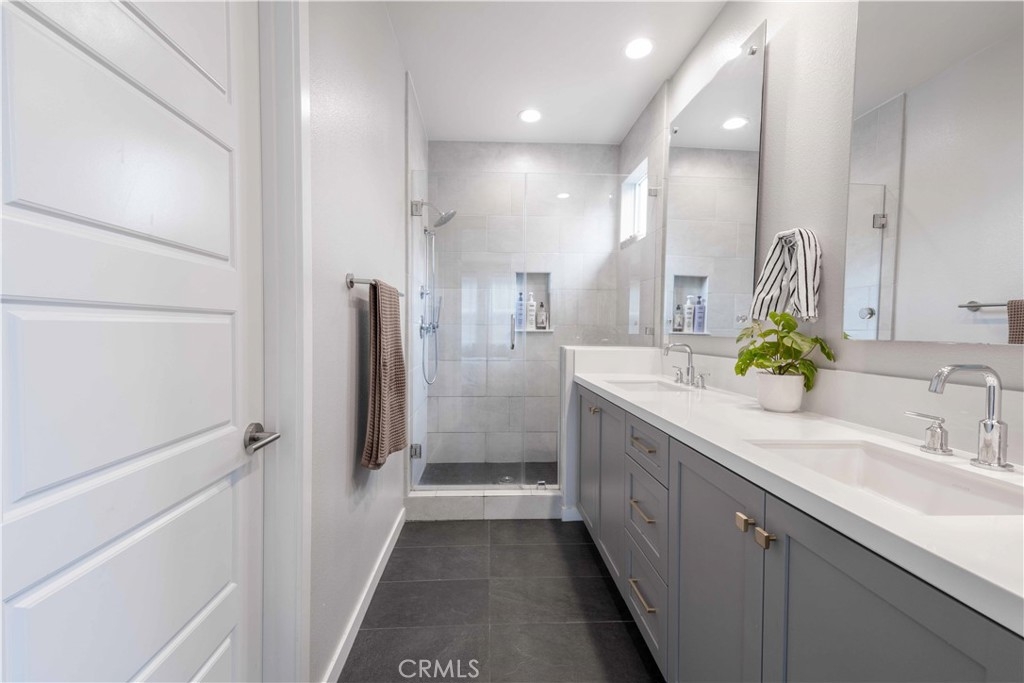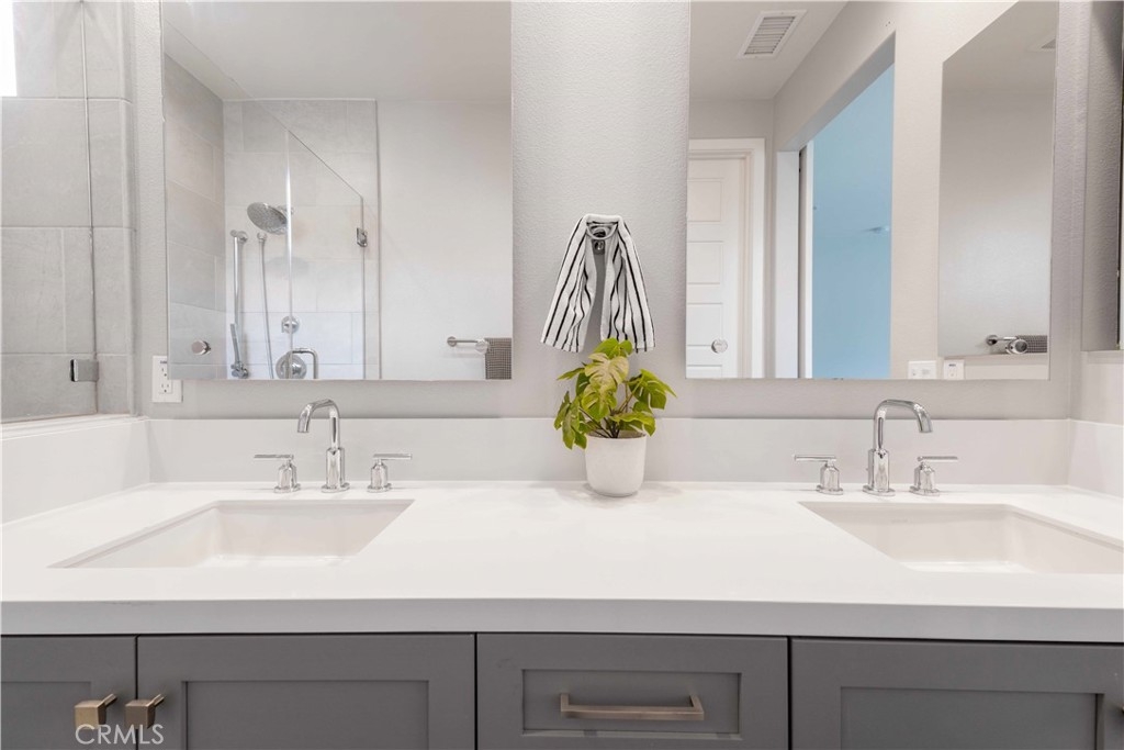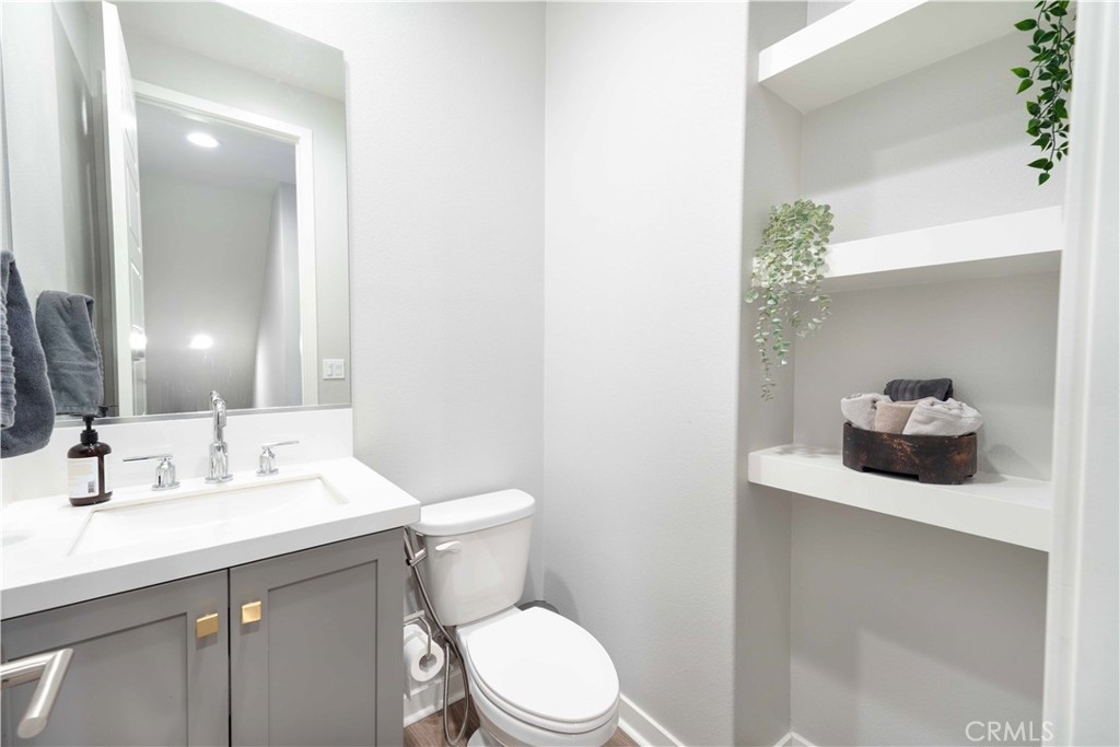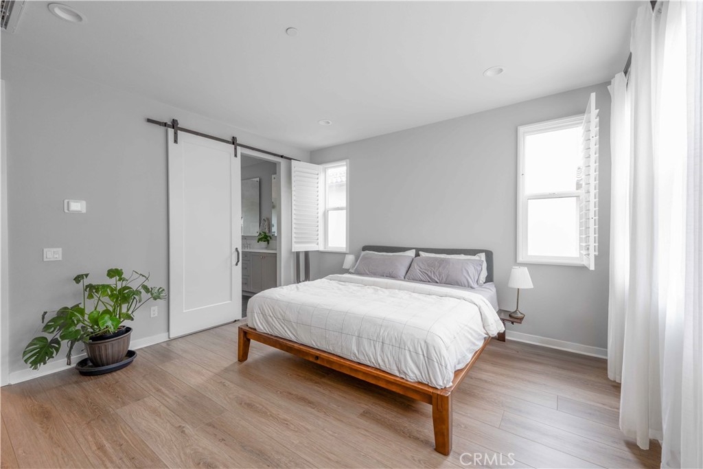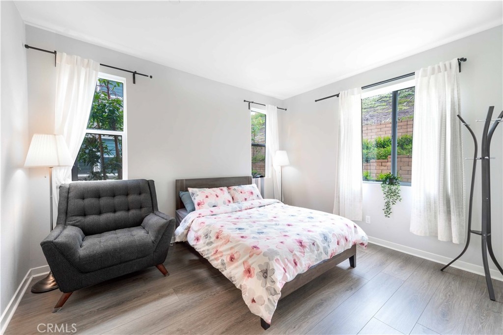Welcome to this stunning 4 bed, 3.5 bath tri level condo located in the newer community of Neo at Mission Foothills. Built in 2022, this newer construction offers contemporary living at its finest starting with a $65k lot premium for this rare END unit. Over $50k in builder upgrades to combine modern design and smart technology. Featuring luxury vinyl plank flooring throughout and upgraded flooring in all bathrooms, this home exudes elegance and functionality. The open concept kitchen is a chef’s dream - granite countertops, painted wood cabinets with soft-close features, a stylish tile backsplash, gold hardware, an upgraded kitchen faucet, and LED lighting. The primary suite is a true retreat, highlighted by a barn door, quartz countertops in the bathroom, floating mirrors, and a stunning chevron tile design. Designed for both comfort and convenience, this smart home is equipped with smart lights, a Ring doorbell, and keyless entry. Recessed lighting in every room, dimmer switches, and prewiring for speakers ensure the perfect ambiance. Shutters on nine windows provide privacy and style, while staircase lighting adds a touch of sophistication. The epoxy-coated garage floor is built to last and includes 220V support, making it perfect for an electric vehicle or workshop setup. Additionally, enjoy your energy efficient home with PAID OFF SOLAR. The best part? NO MELLO ROOS and LOW HOA dues. Must have amenities include a pool, spa, barbecue area, park, fire pit, and playground, offering endless opportunities for relaxation and recreation. This home is in close proximity to shopping, dining, trails, and much more! Schools are located in the award-winning SVUSD. Don’t miss out on the incredible opportunity to call Mission Viejo home!